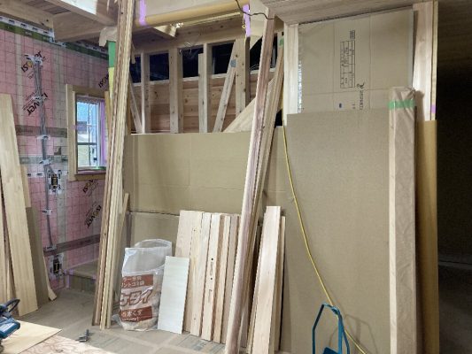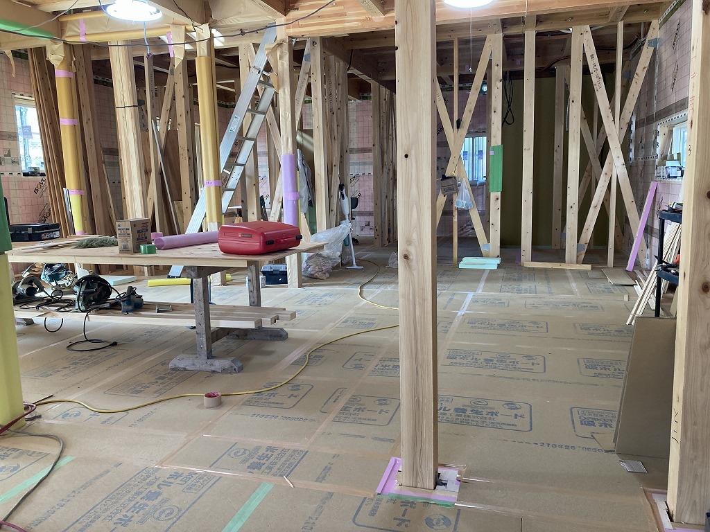 s幸棟梁は、1階の充填断熱を施す準備に取り掛かっています。また来週の水曜日に現地で電気打合せにお邪魔します。