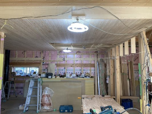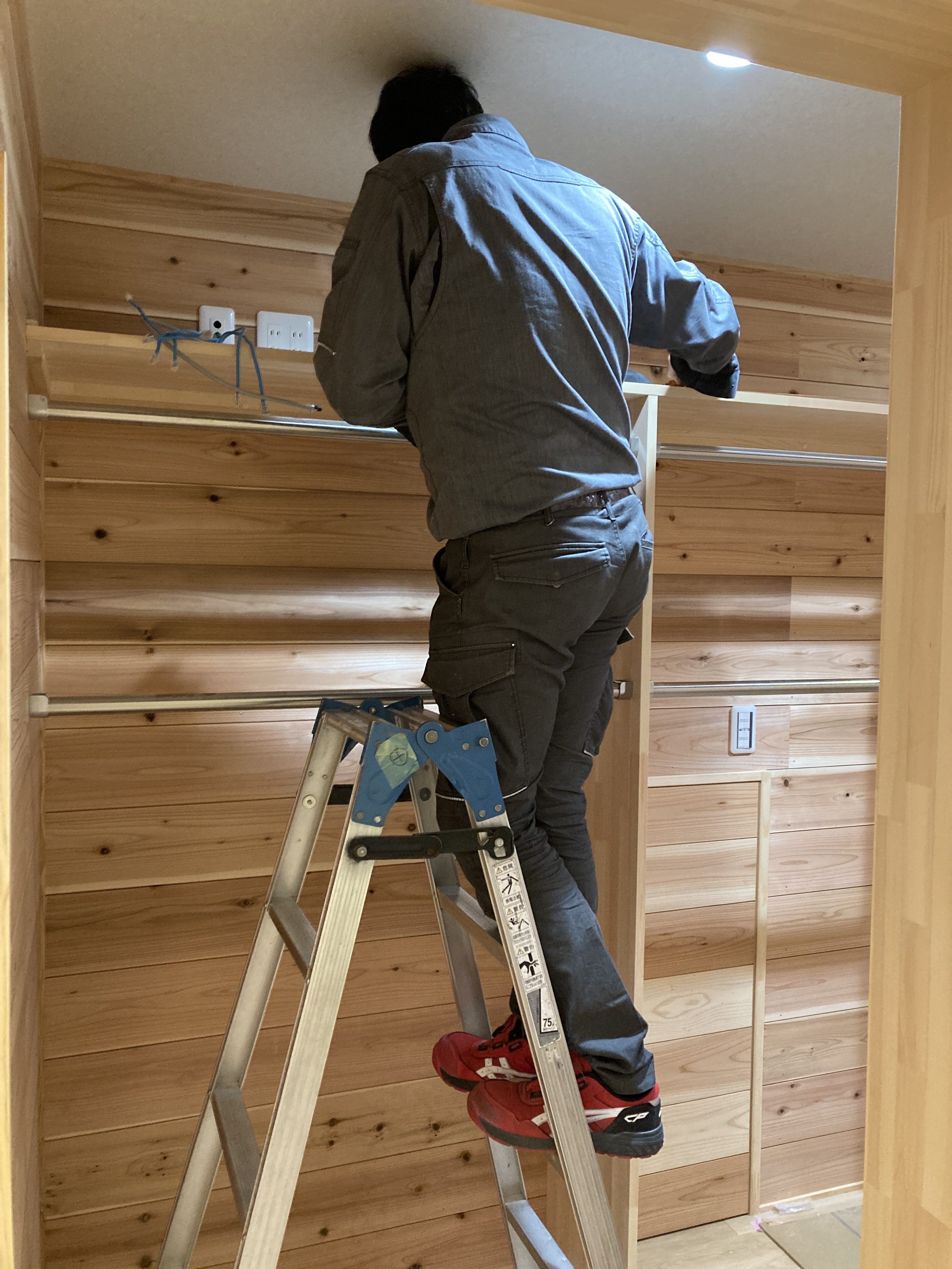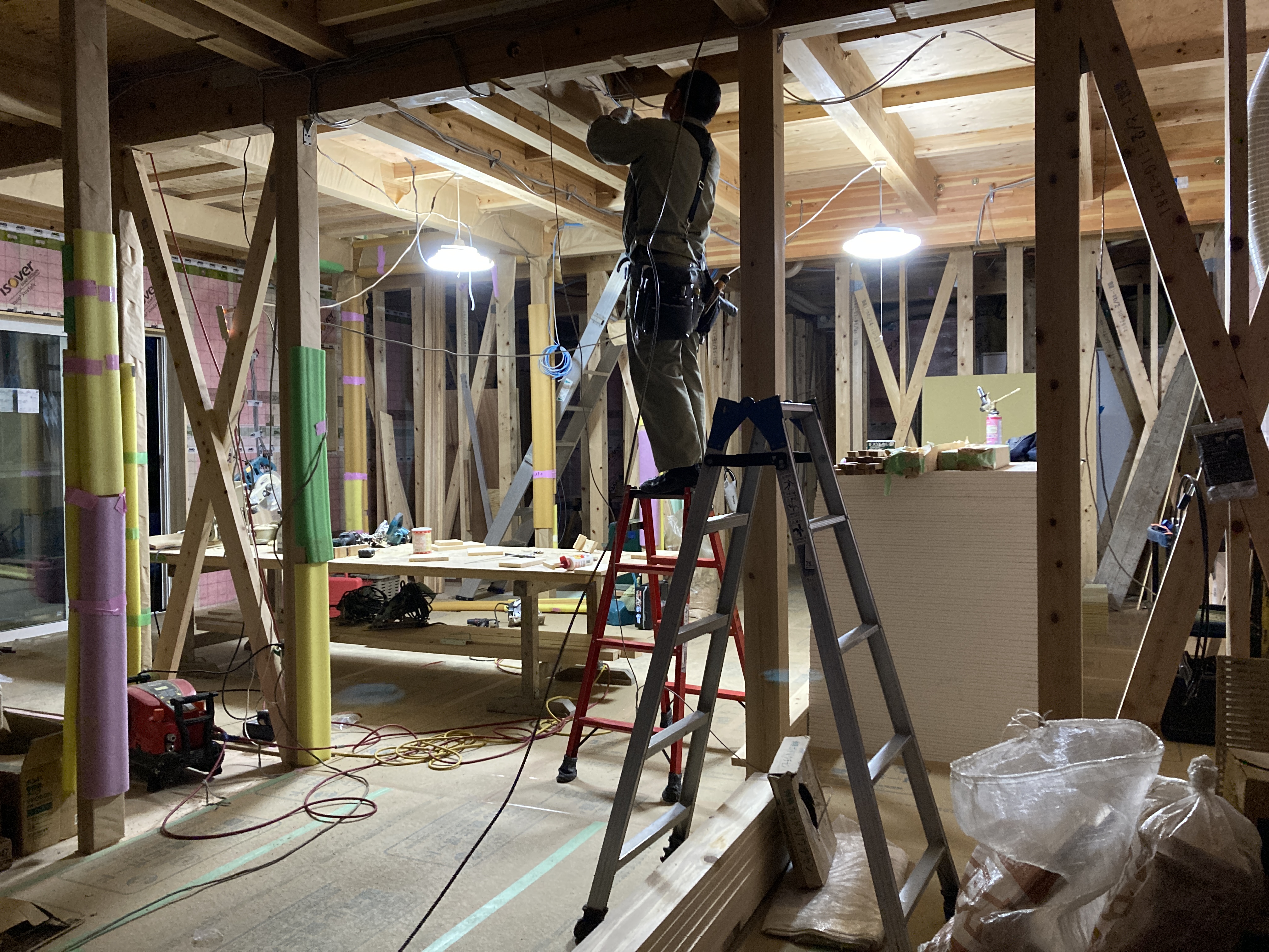 点灯指揮者のf井電気のh場さんももちろんいます。電気屋さんは工事の初めから終わりまで見れるので、いろいろアドバイスをもらえます👍