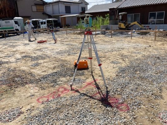 t広さんが念力で、雨を寄せ付けなかったのでしょうか?i様の上棟を日柄が良くご都合いい時にできるといいなぁと段取りしてくれています。私も江南から、残りのレベラー施工の日は天気になりますようにと念力を送りたいと思います。(o本君撮影)