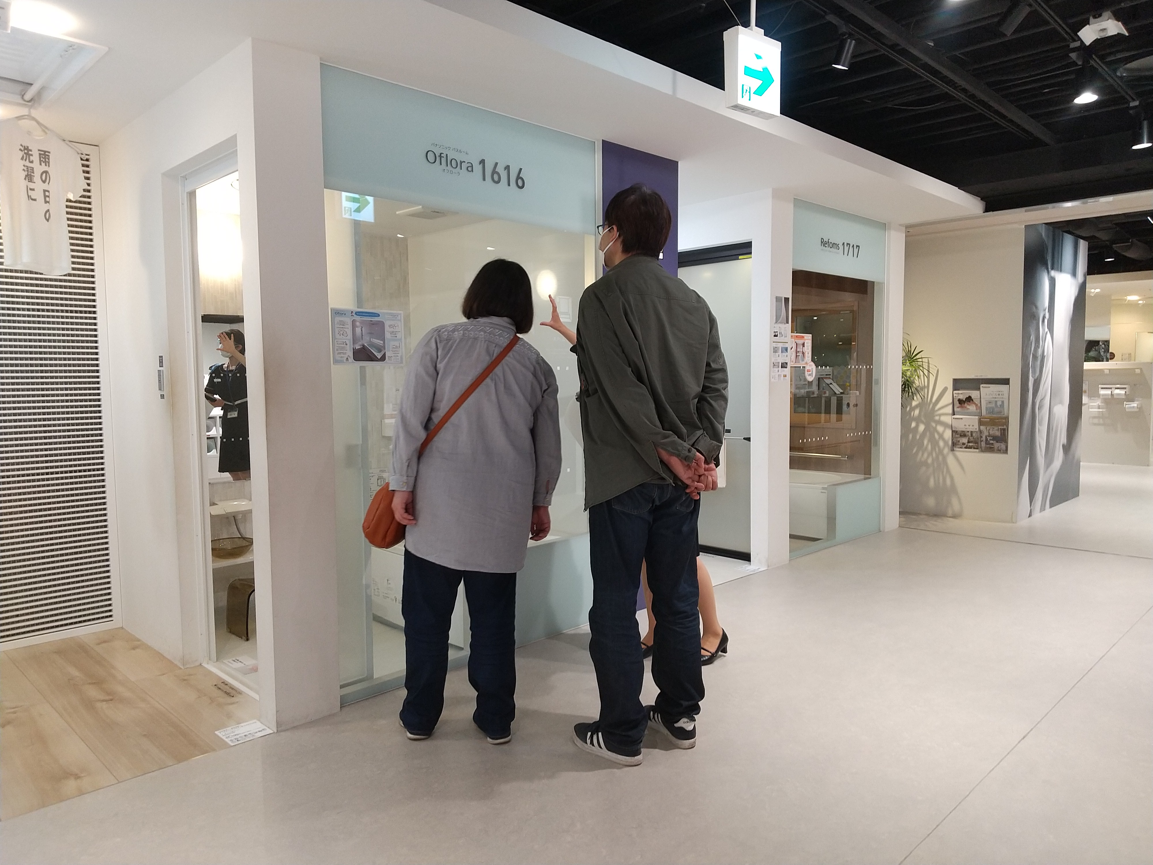 今日は、4月にご契約いただきましたi様ご夫婦と浴室と太陽光の確認をしに、Panasonicショールームへ行ってきました。身長185cmの長身のご主人には4種類の浴槽に実際に入っていただき、入り心地を確認していただきました。カタログでは広めに見える形状でも実際に入ると違う形の方がゆったりは入れたり、そういった事はやっぱりショールームで実際に体験していただくのが大切ですね。