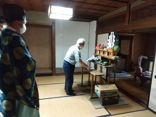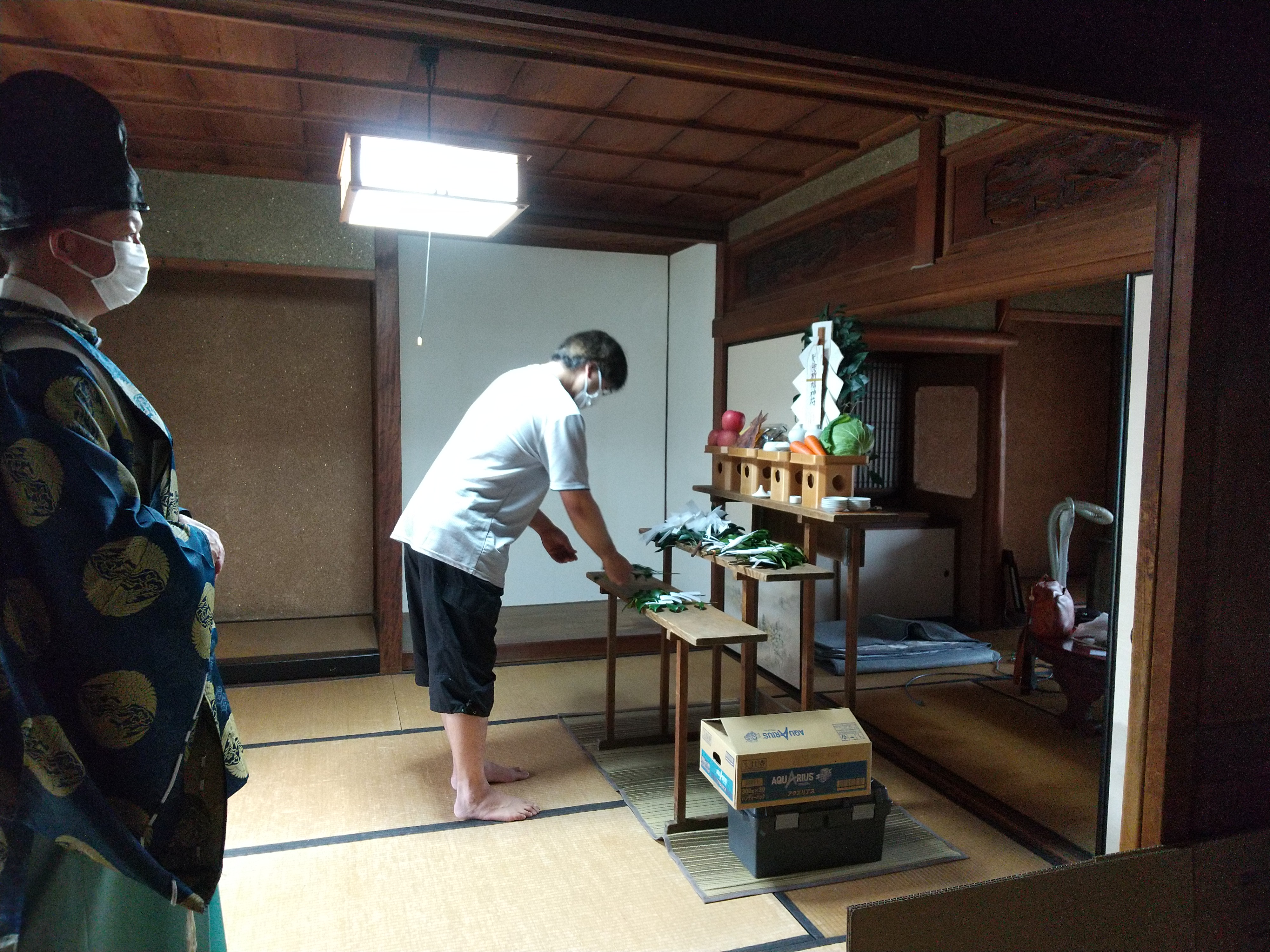 玉串奉奠。時より小雨が降りましたが、無事に解体祭を執り行う事ができました。今までi様ご家族を見守ってきたお屋敷、ありがとう、お疲れ様でした。