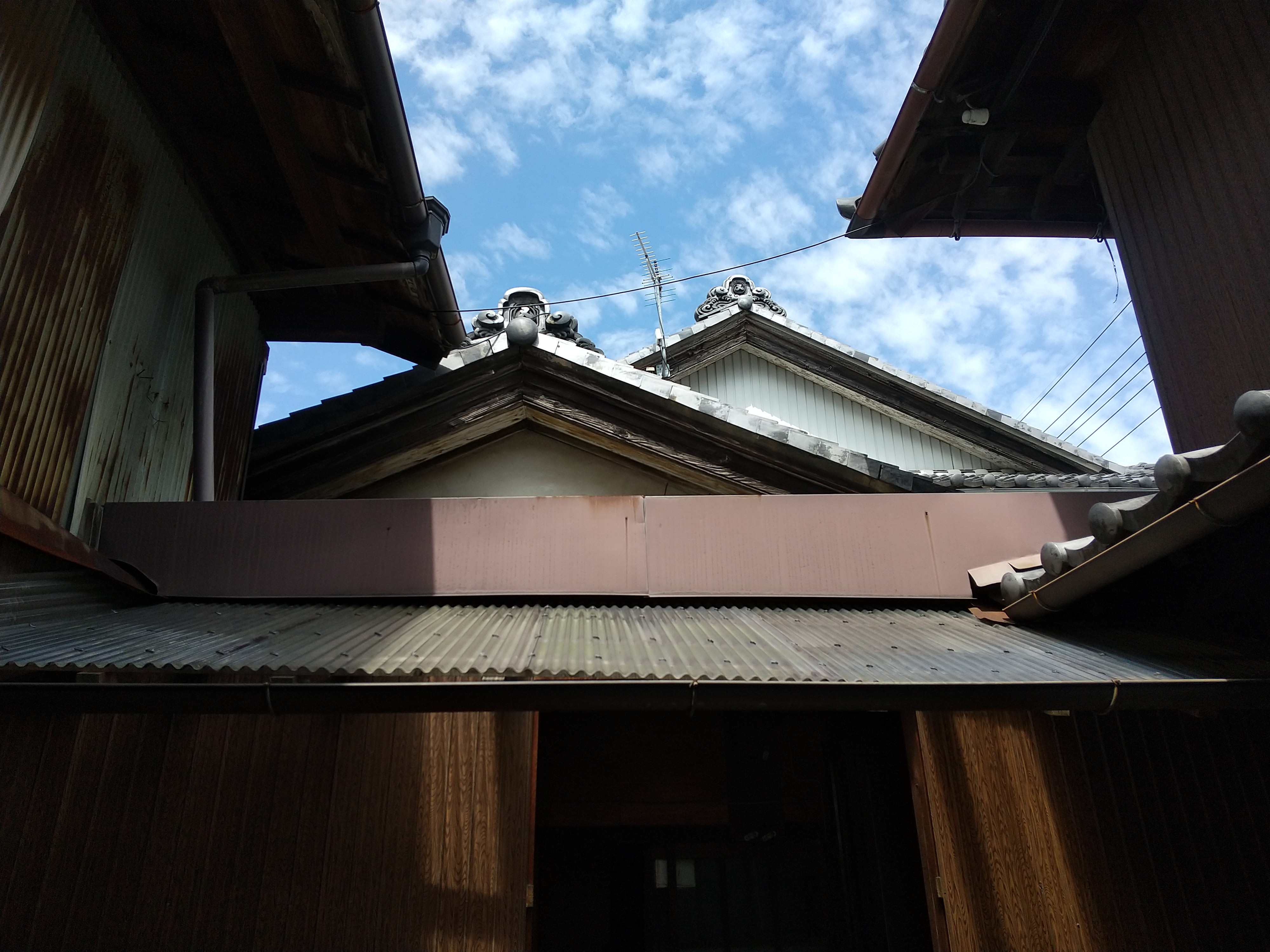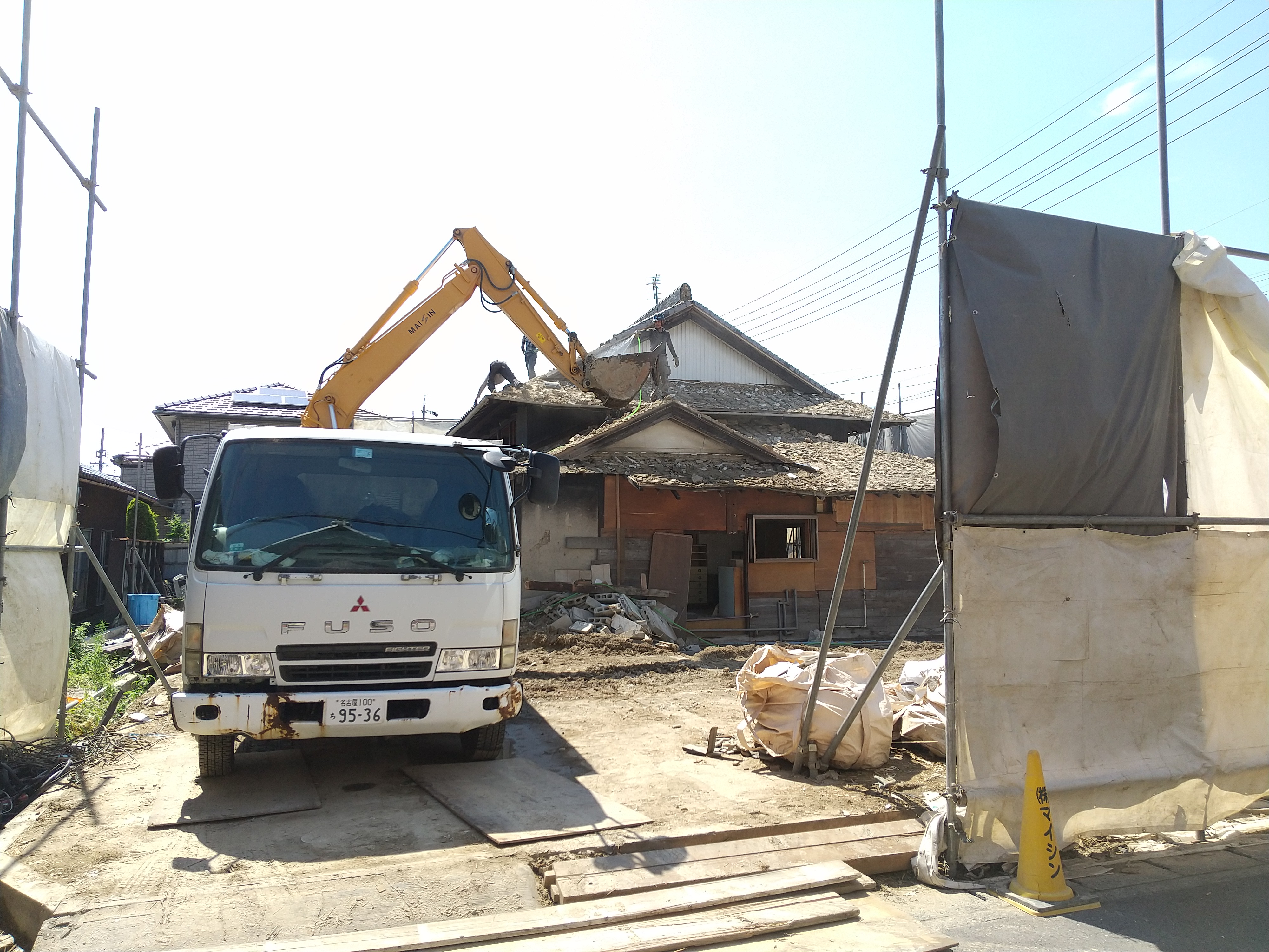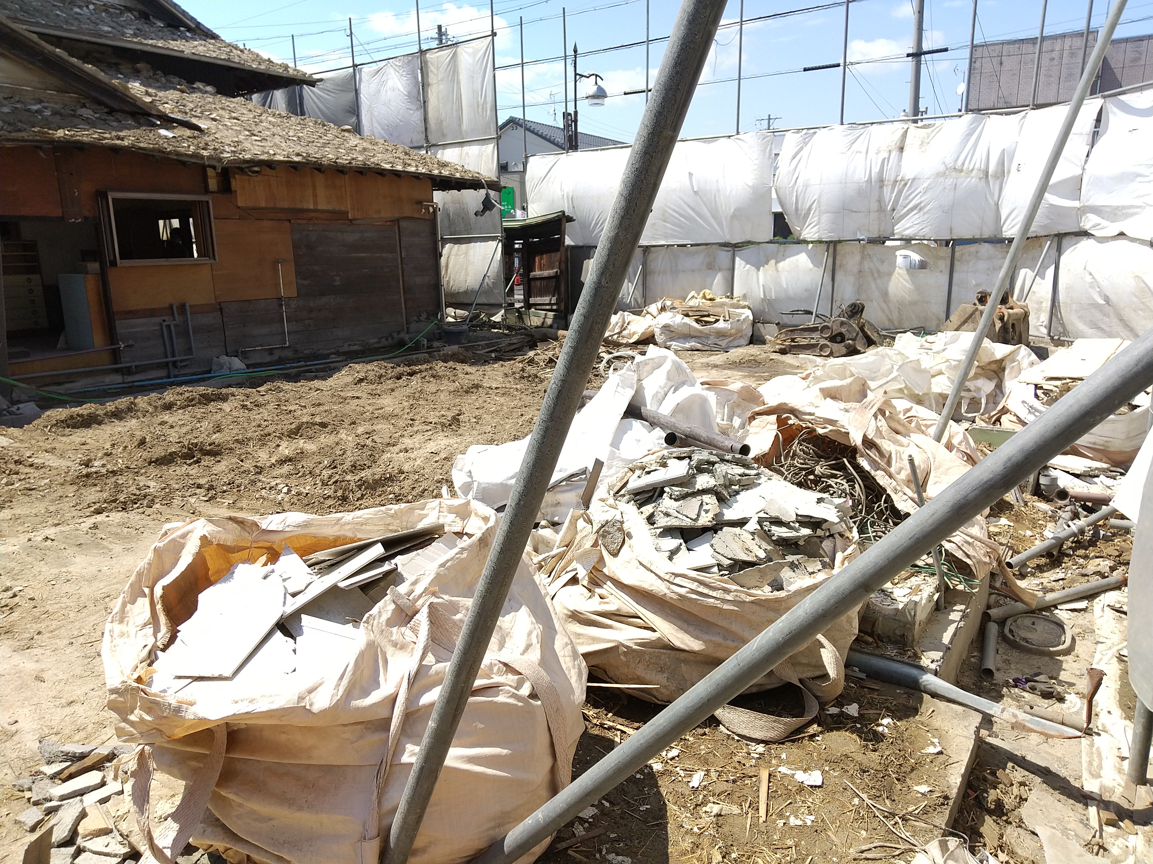 母屋の屋根は、やはりこちらも土葺きで、ご近所の方にはご迷惑をおかけしています。解体時にどうしてもこの土が周囲に舞ってしまうんです。i様とは、ちょうど梅雨時でいい時期に解体だねなんて話していましたが、空梅雨・・・お天道様には勝手なことを言いますが、もうちょこっと雨も降ってくれると嬉しいです。