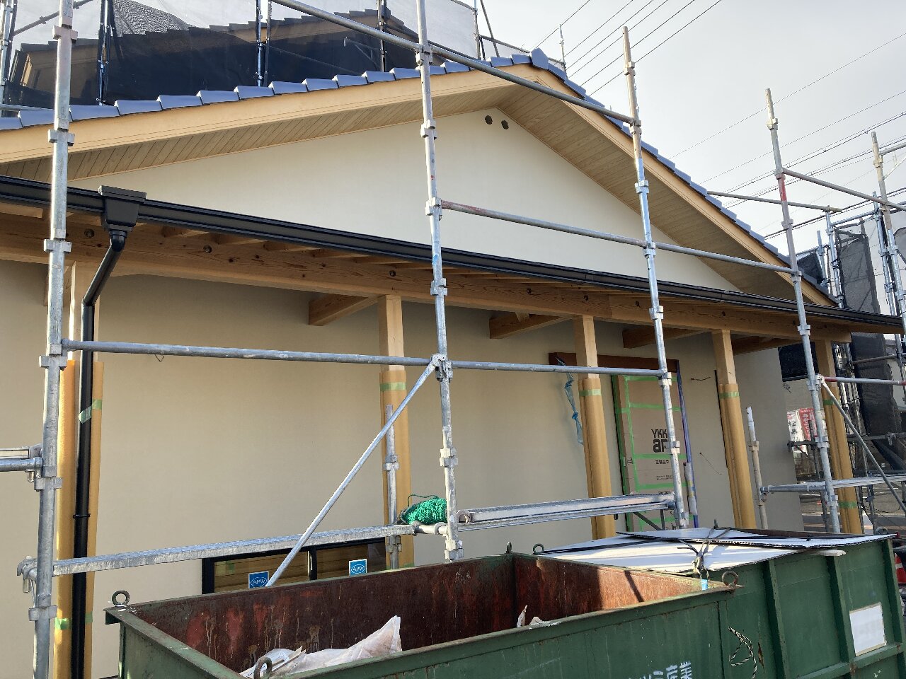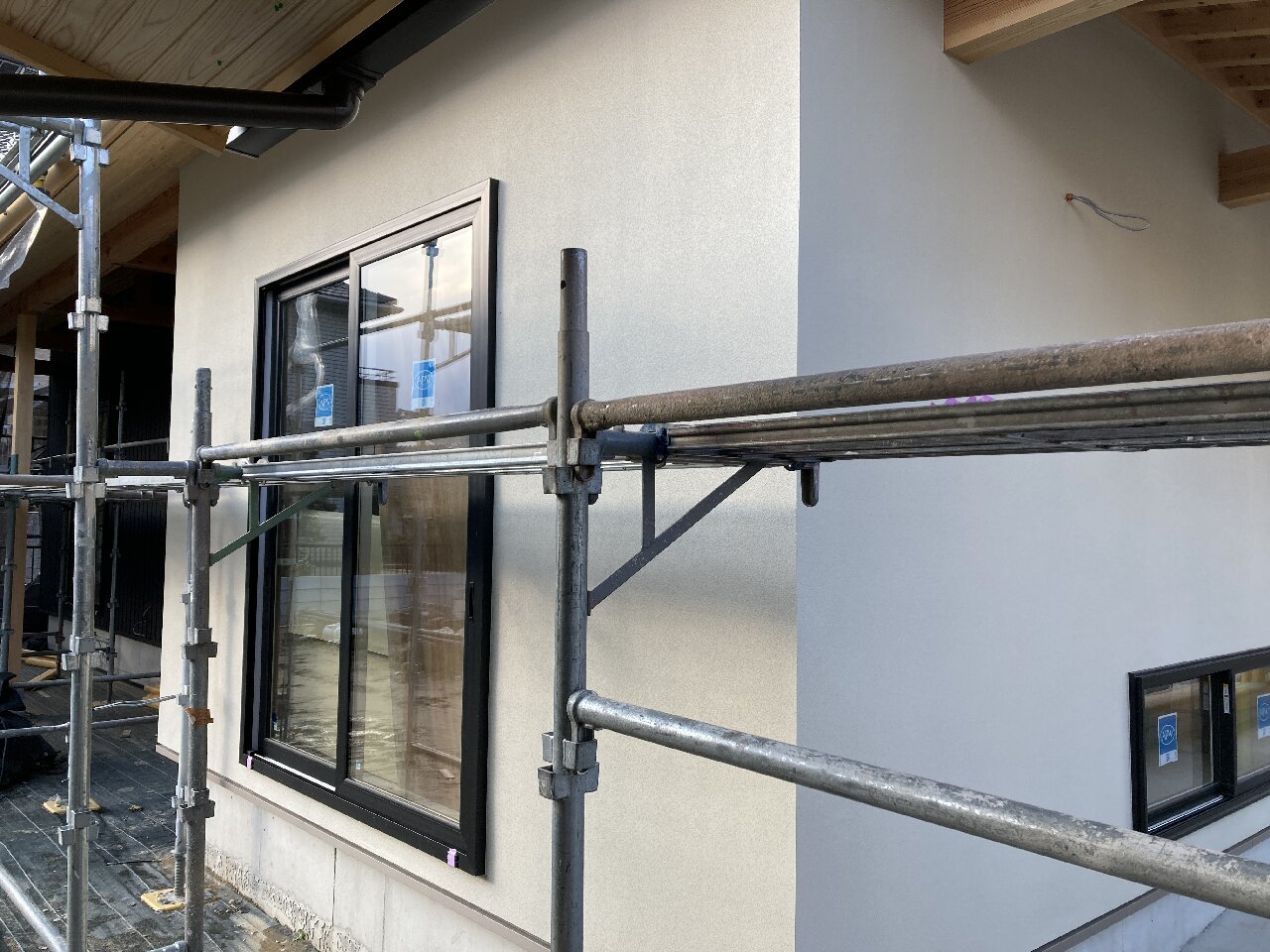 建物の工事も残りわずか。来月からは外構屋さんも入ってくるので、先日打合せしていた外構プランの色決めにやってきました。門柱の塗り壁の色、表札、フェンス、カーポートやポストの色など。外観に合わせて何色が合いそうか、11時頃からは日差しが出てきて暖かい中、外で打合せをしました。