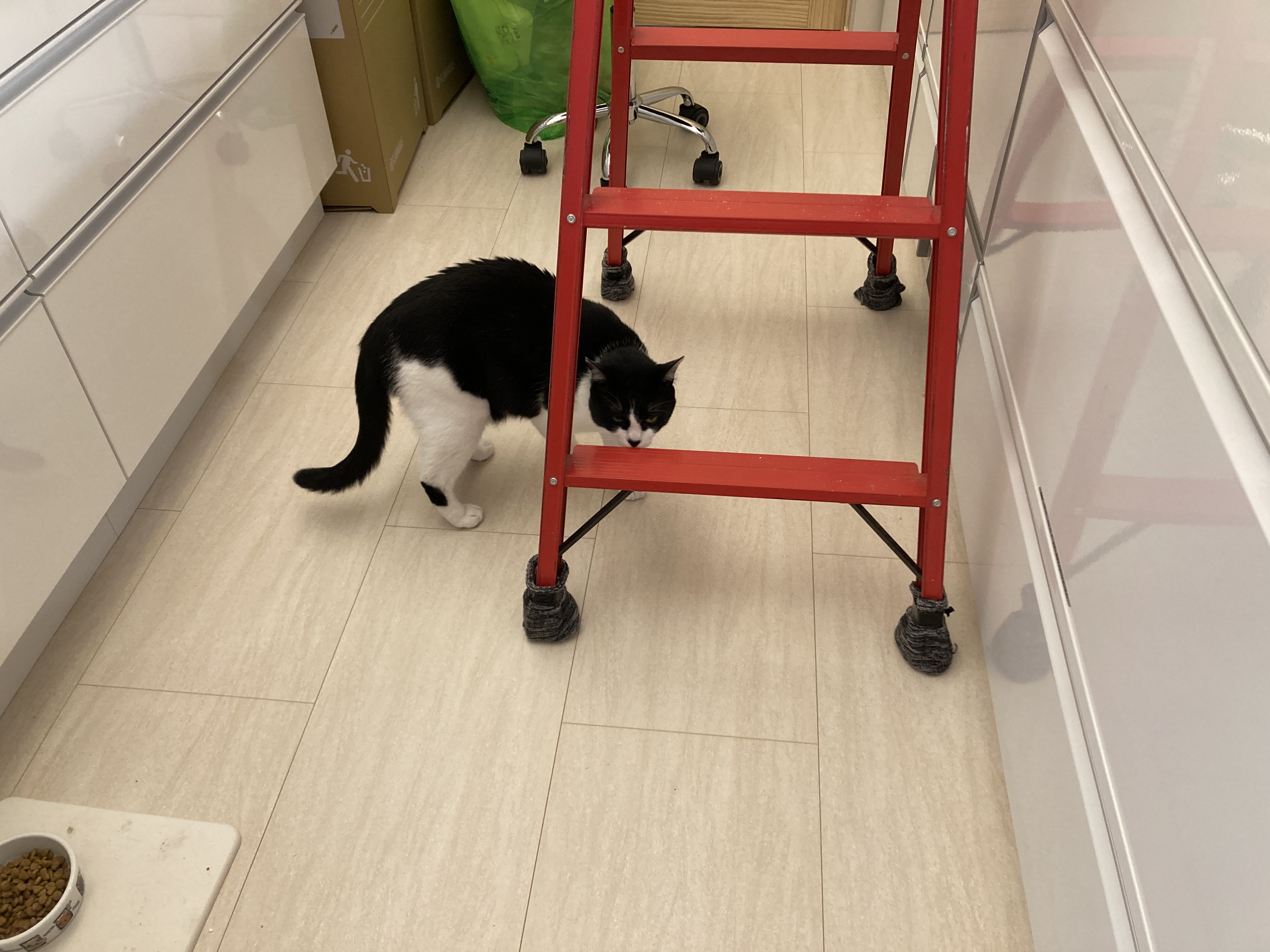 取付終わると、いそいそと下りてきて、クンクンと脚立の匂いを嗅いでいます。明るくなって良かったニャン🐾