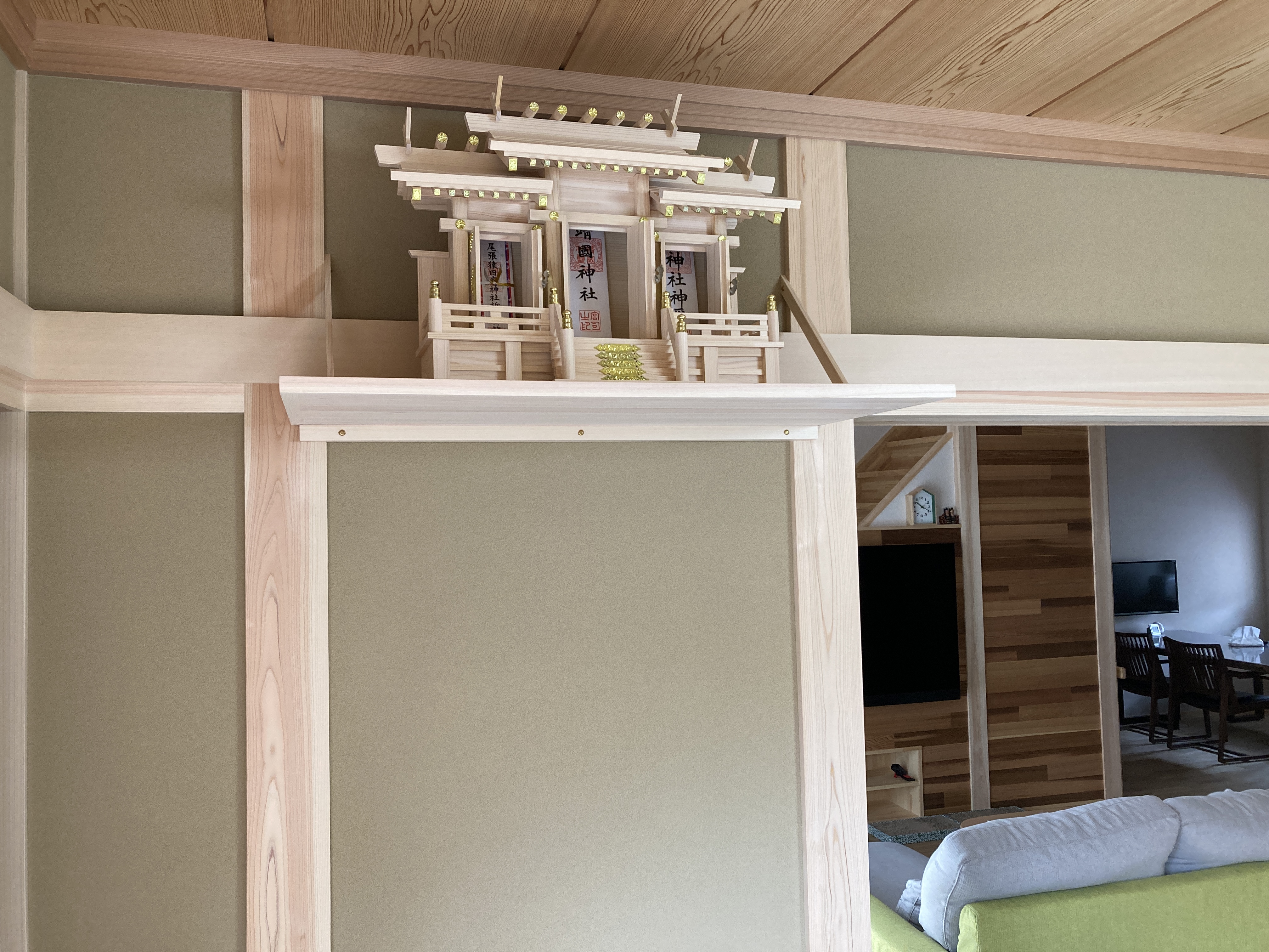 一昨日、会長と長い間お待たせしました社をお届けに伺いました💦本当に遅くなりごめんなさい!棟梁に付けてもらった神棚にぴったりいい感じに納まりました👍東濃ひのきで造られたお社は、和室に馴染んでいます。一足先に立派な仏壇もピッタリと納まっており、これで和室も落ち着き、完成です。そして、ご主人がずっと会長に会いたい~とおっしゃってくださっていたのも実現し、私はホッと一安心です。