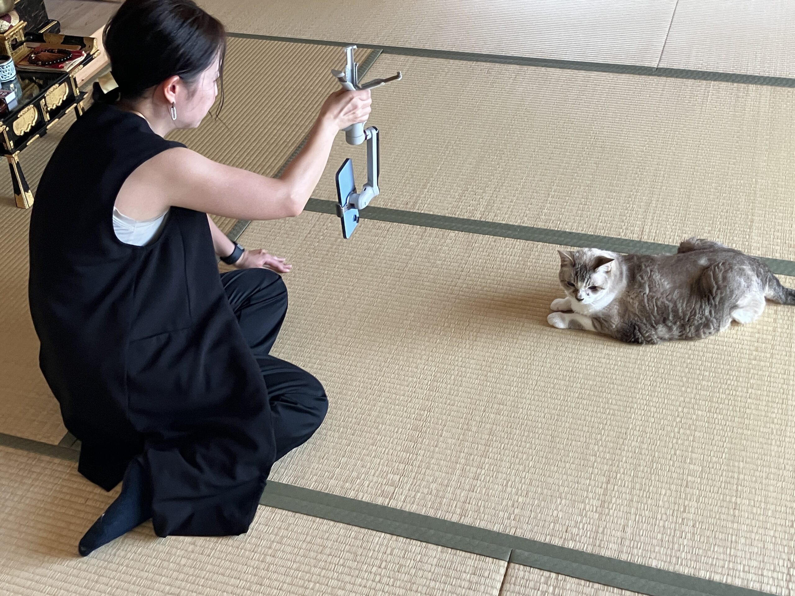 吹抜けのあるリビングで、TV後ろの階段からyamato君(猫)が、降りてくる姿を撮ってもらいたかったのですが、そんな思惑通りにはいかないものですね💦今回は、老猫maruちゃんが撮影に応じてくれました🐈既に、Instagramの動画がUPされています。maruちゃんもいい感じに映っています👍