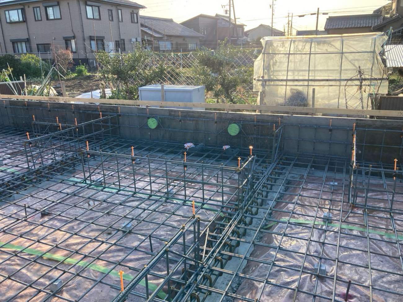 お天気が悪かったので、ゆっくり進んでいます💦昨日やっと配筋がここまで進みました。上棟まで屋根が無いので、お天気に左右される工程が続きます。