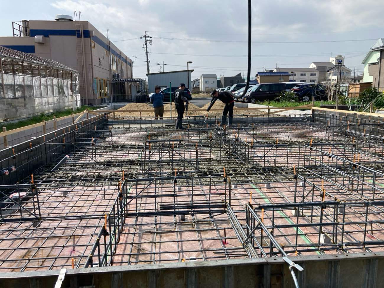 29日に配筋検査を受けて、翌日コンクリートを打設しました。よい天気の間に何とか進んでいます💦