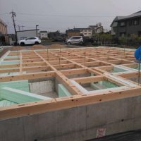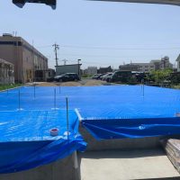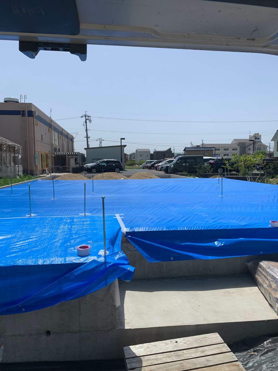 土台伏せが行われました。h典棟梁とk保木大工さん(チーム高山)が施工後の写真を載せてくれました👍基礎スカート断熱なので、外周部より約1mは基礎底盤に断熱材をこの土台伏せの際に敷いておきます。そして1階床の剛床(合板)まで敷き詰め、上棟までの間、雨がかからないようにしっかりと養生しておきます。
