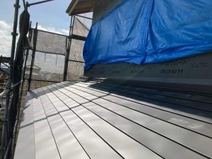外部は、y江板金さんがガルバリウム鋼板を張り進めています。y江板金さんも📸アングル👍ありがとうございます!