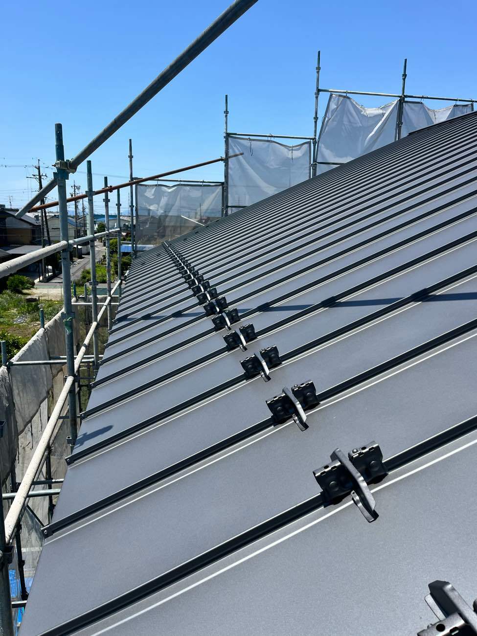 ごめんなさい💦y江板金さんによって、屋根工事が完了していたのを掲載するのを忘れていました。立てハゼ葺きです。