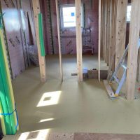 内部は床が張り終わり、天井を張っています。f 井電気のh場さんは、工事が早く進んでいるので、昨日は遅くまで作業してみえたそうです💦