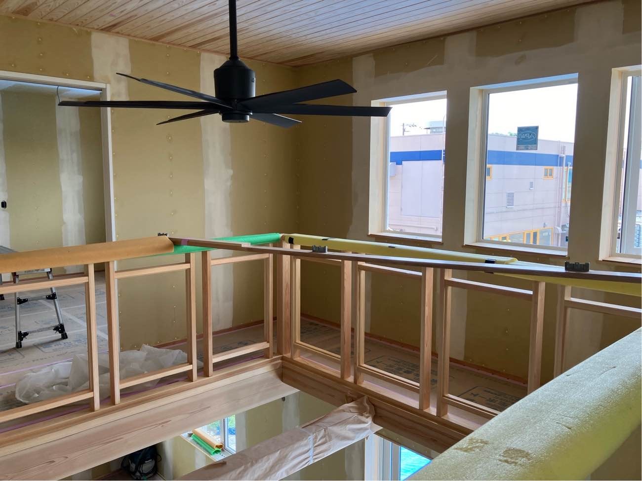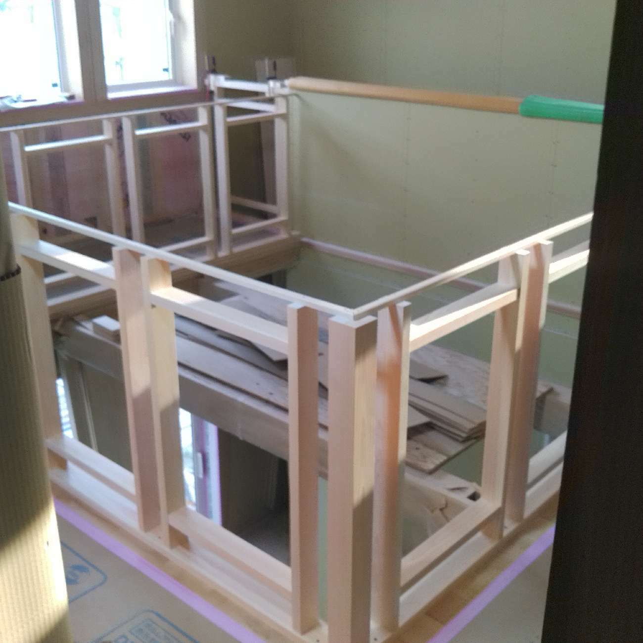 2階の吹き抜け手すりは、奥様がInstagramで気に入られた物を再現中です。私も現物を見るのが楽しみです。h典棟梁、力作の吹き抜け手すりになりそうです👍