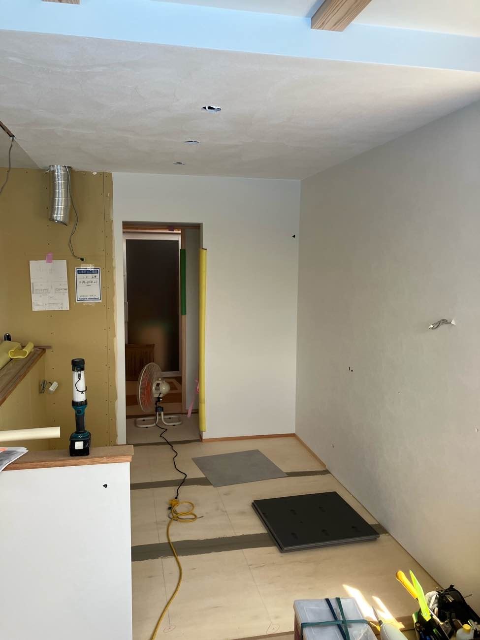 台風10号(サンサン)に日本中が翻弄させられている中、y様邸の内部では、粛々と仕上げ工事が進んでいます。
