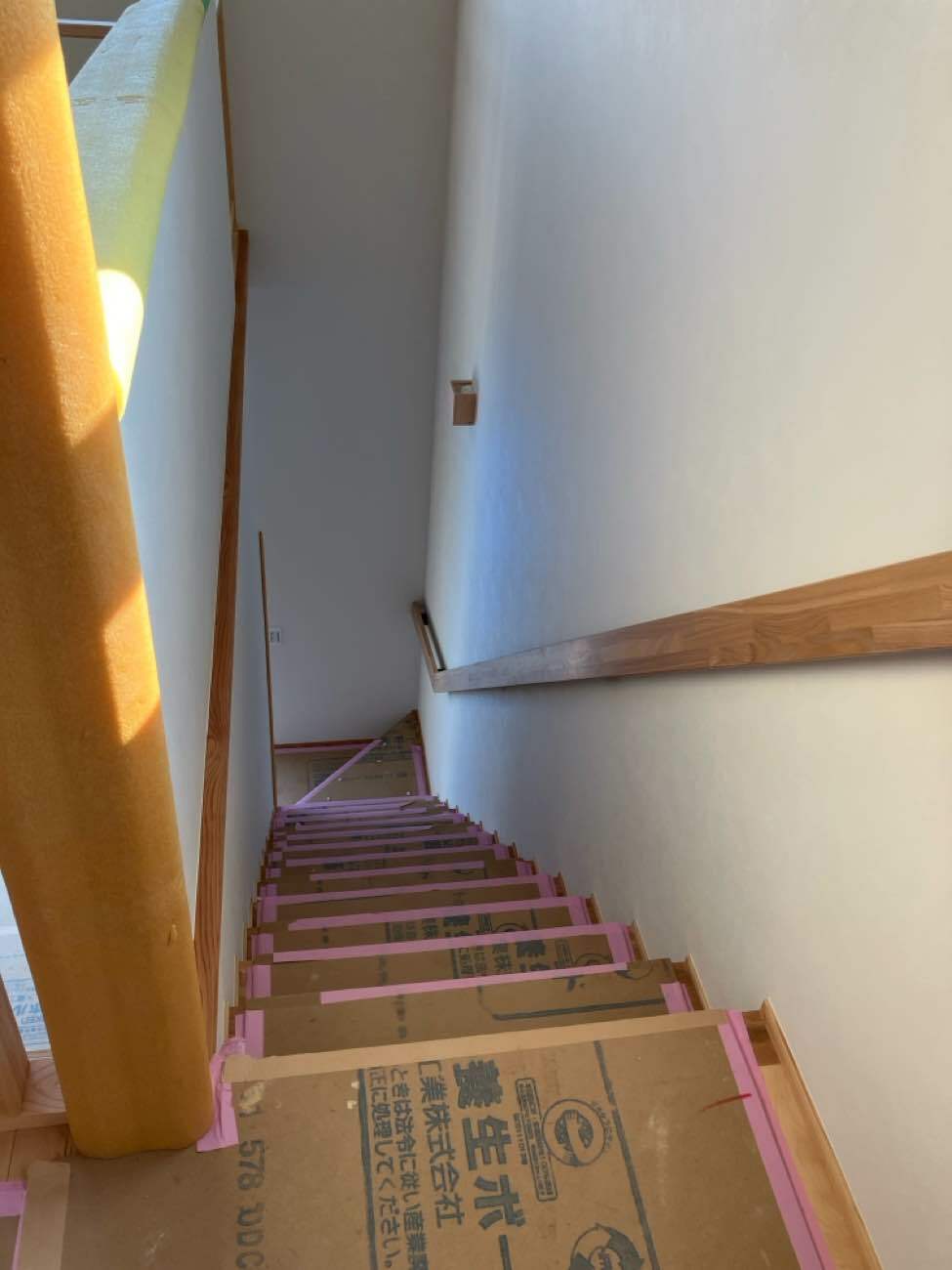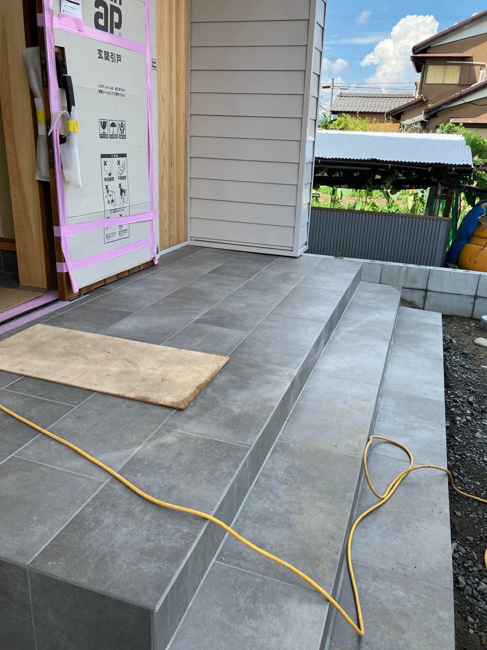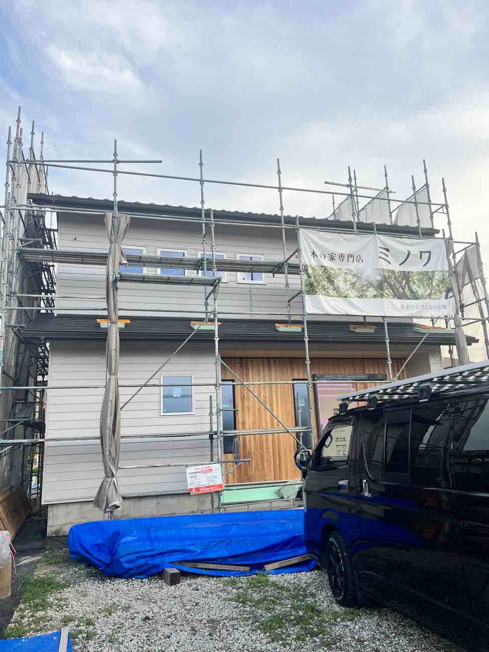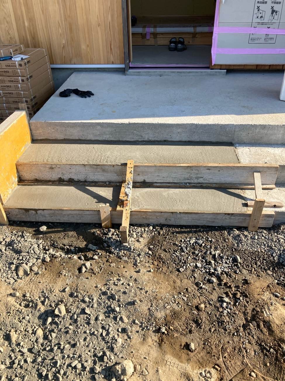 外部は外構計画が変わり、玄関ポーチの階段が継ぎ足されました。外構工事はミノワで受注できず・・・残念💦ですが、建物をより良く引き立たせてくれる外構工事にしていただければ、どこで注文されても嬉しいです!こちらも出来上がりが楽しみです。