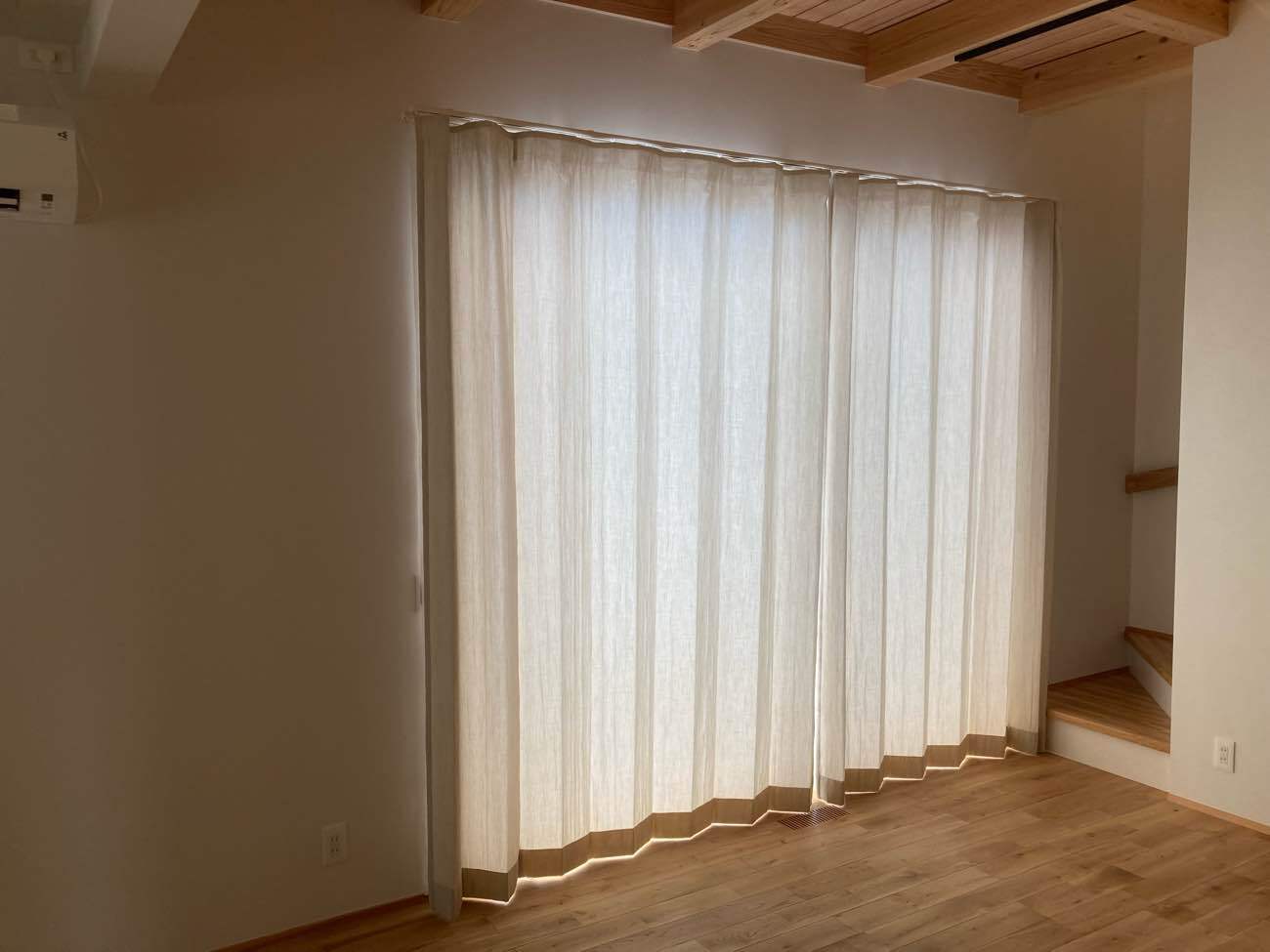 先週の見学会後に、社内検査、手直し、再クリーニングを終えて、カーテンも取り付けられました。