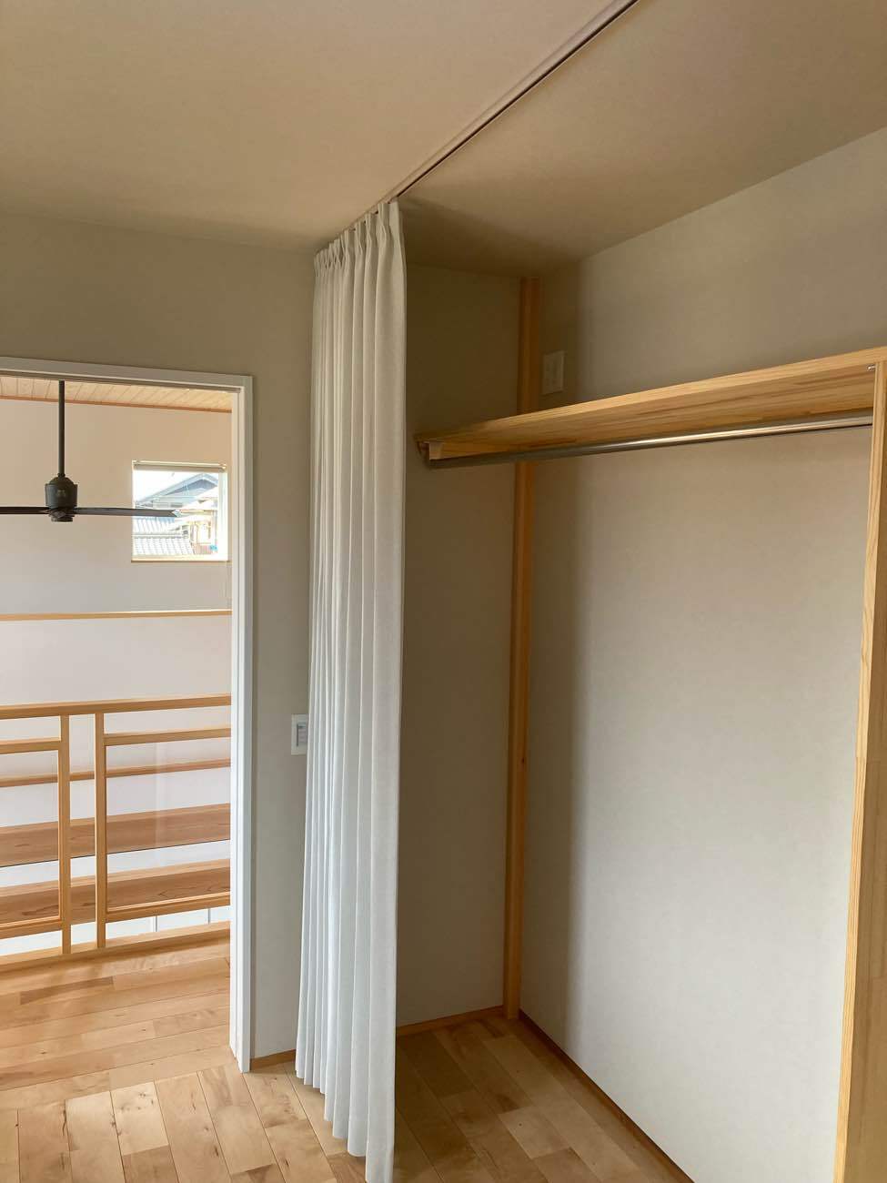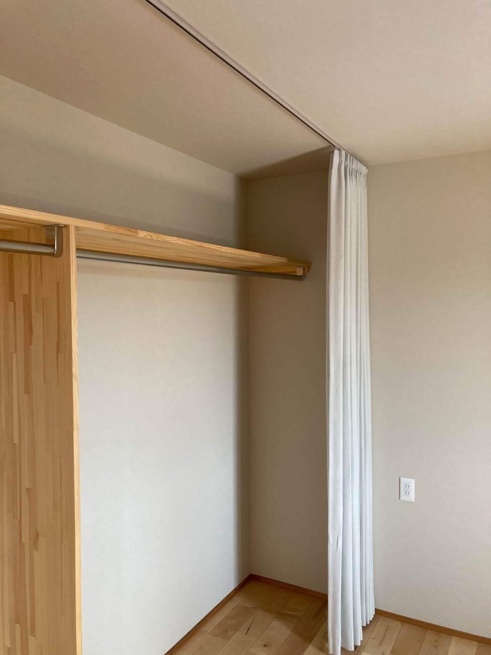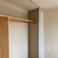 寝室のクローゼットには、カーテンを取り付けられました。大きな扉がくると圧迫感がありますが、カーテンだと柔らかい雰囲気になりますね。いよいよ30日がお引渡しです。