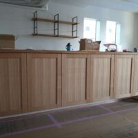 内装工事が終わり、f井建具さんが建具を納めにみえました。建具や照明器具が取り付けられると、いよいよ完成間近だなぁと思います。製作建具は、温かみがありいいですね👍今回は、TVボードの扉は引違いの様です。なんだか少しレトロな雰囲気で懐かしさを感じます。