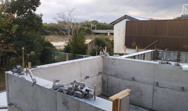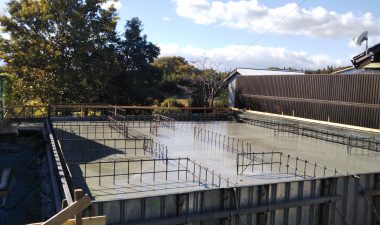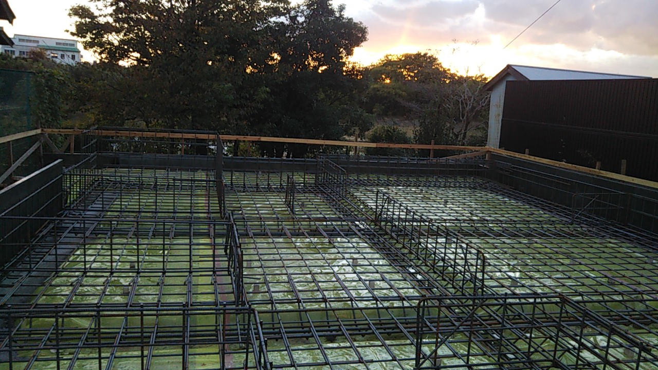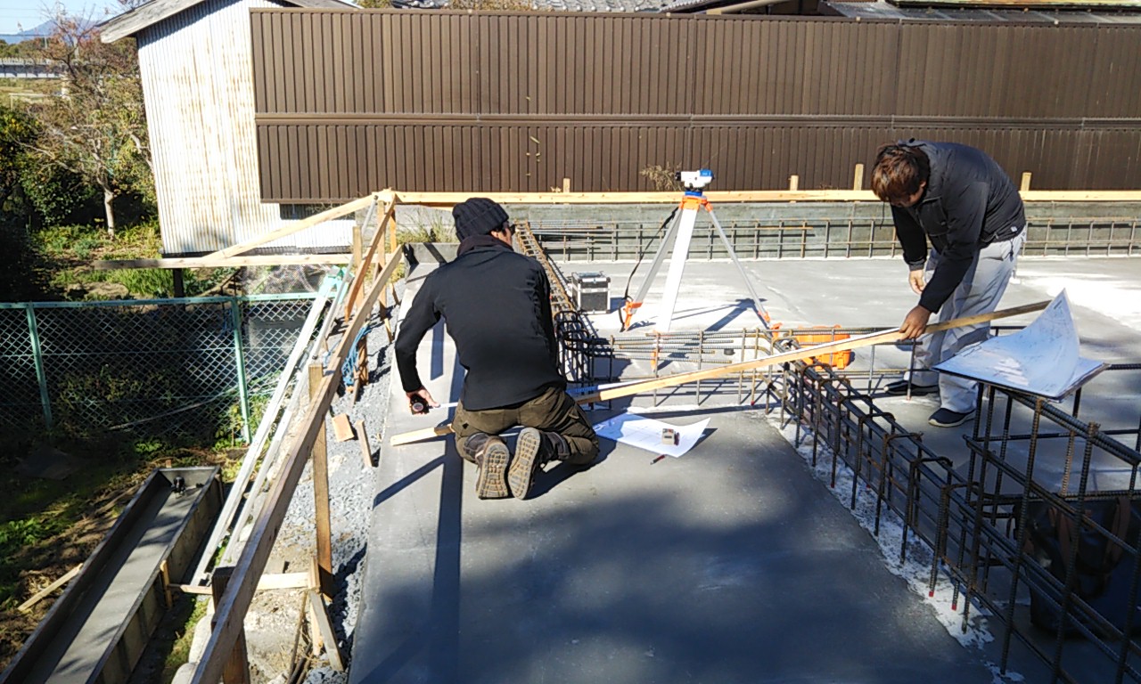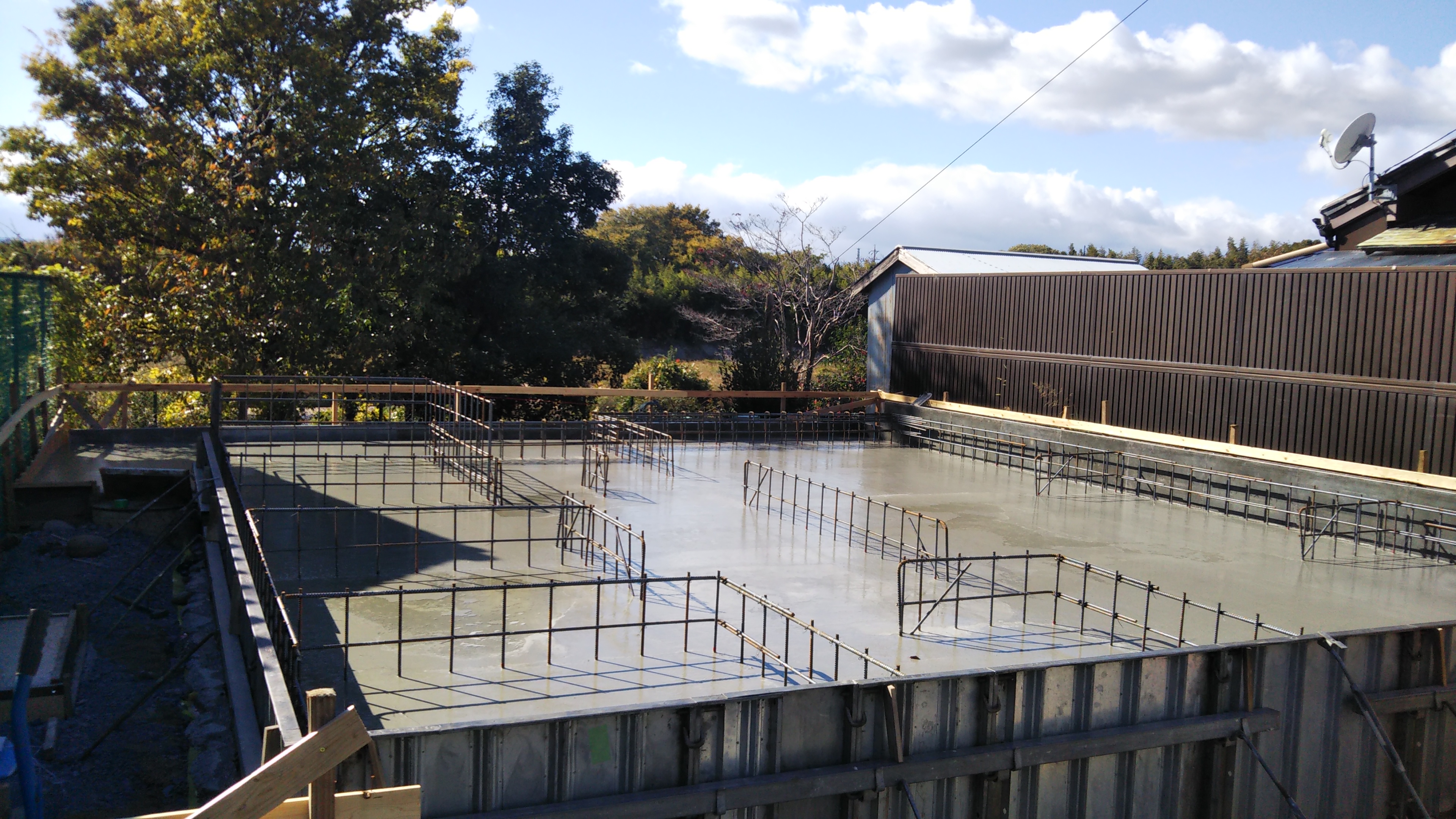 ベースコンクリートを打設しました。最近は雨も少なく、外の仕事をするには良い気候が続きます。