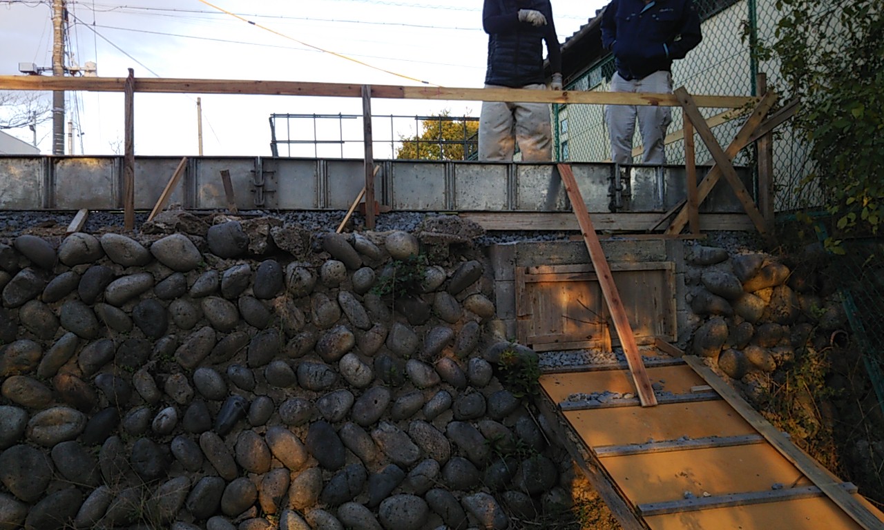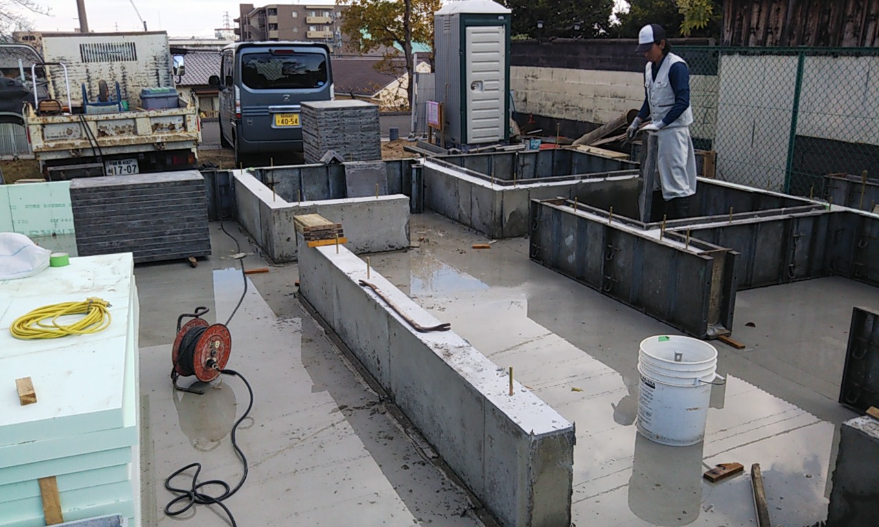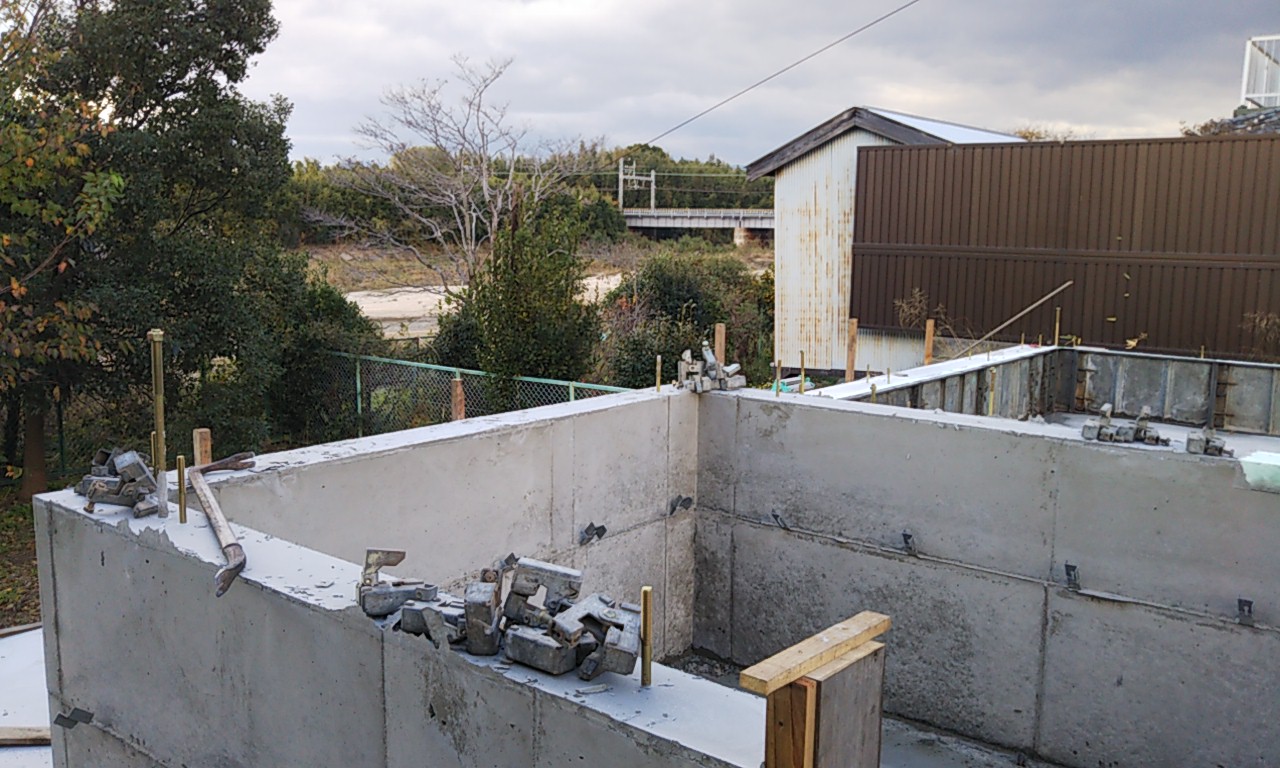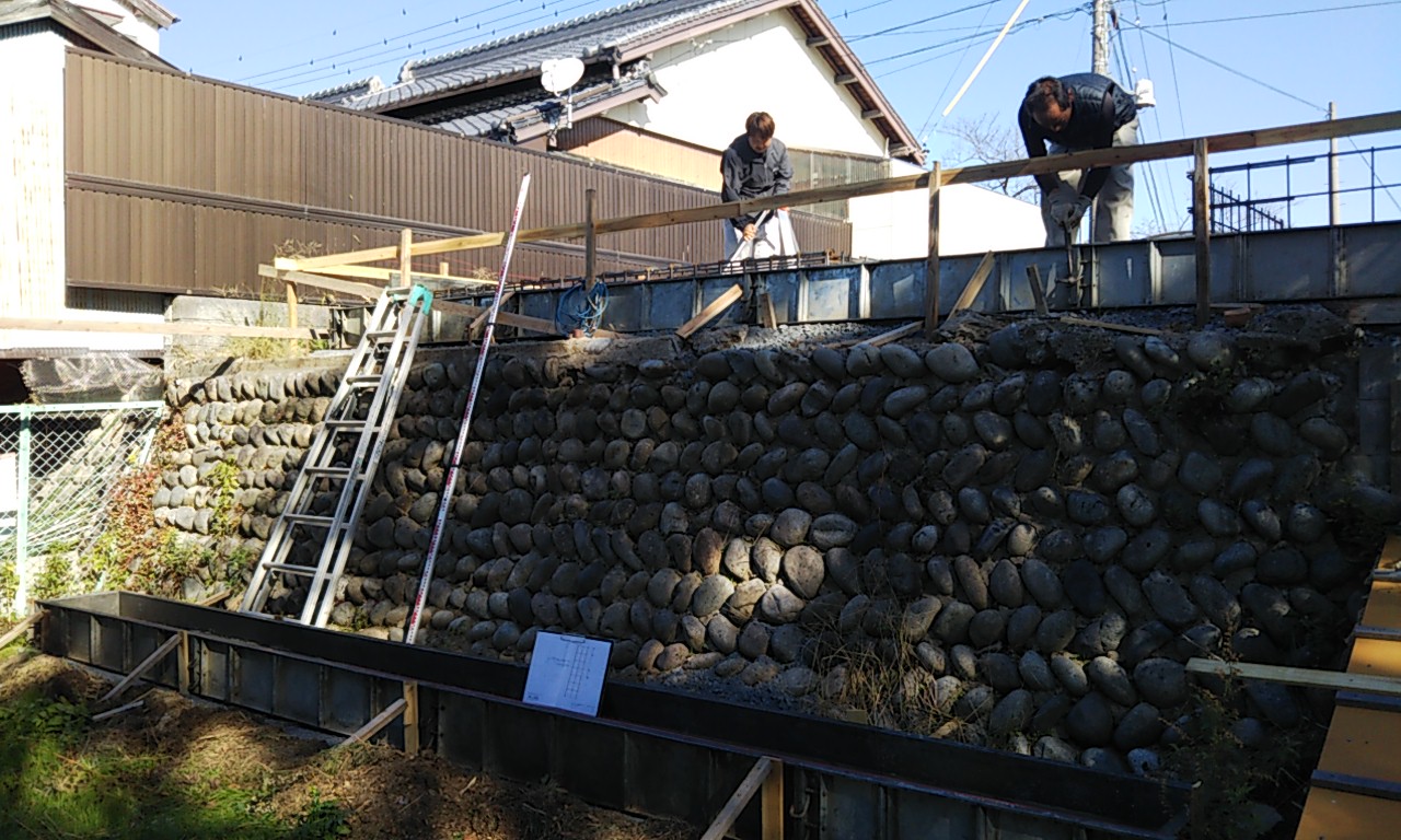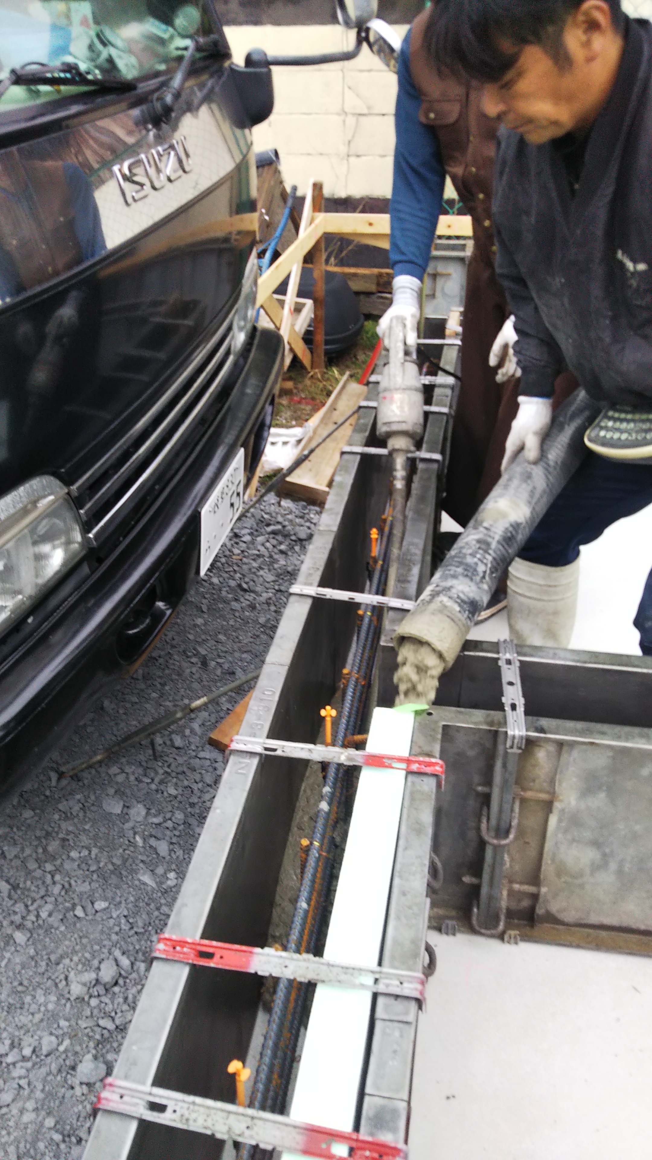 立上りのコンクリートを打設しました。今回は背丈の高いコンクリートもありますので、打設する際に入念に振動をかけ、密なコンクリートを施工する必要があります。