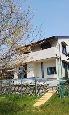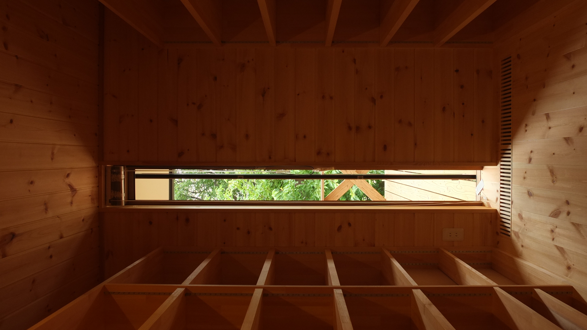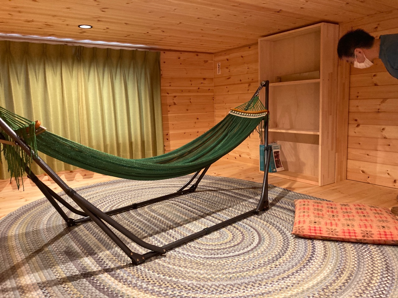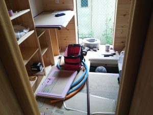 n様邸の一年点検にやってきました。お引渡し以来久しぶりにうかがいますが室内は1年経っているとは思えないほどきれいに整頓されています。換気扇の点検のためロフトにあがると据え置き式のハンモックが。天井も低い空間なので落ち着きそうです。奥の窓からは工事中にも見えた某N島スパーランドの花火が見えるとの事でしたが、昨年は新型CV禍のため中止になったそうです。今年こそは見れると良いのですが。