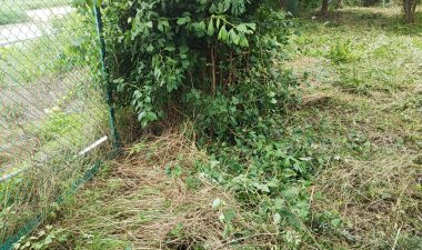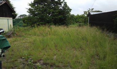 前回刈り取り切れなかった草がまだまだ残っています。本日は第2ラウンドという事で段差のある敷地の下の部分にやってきました。