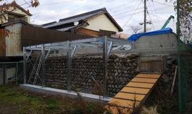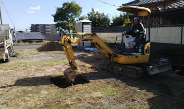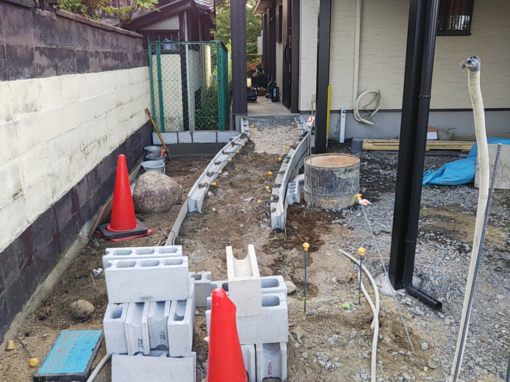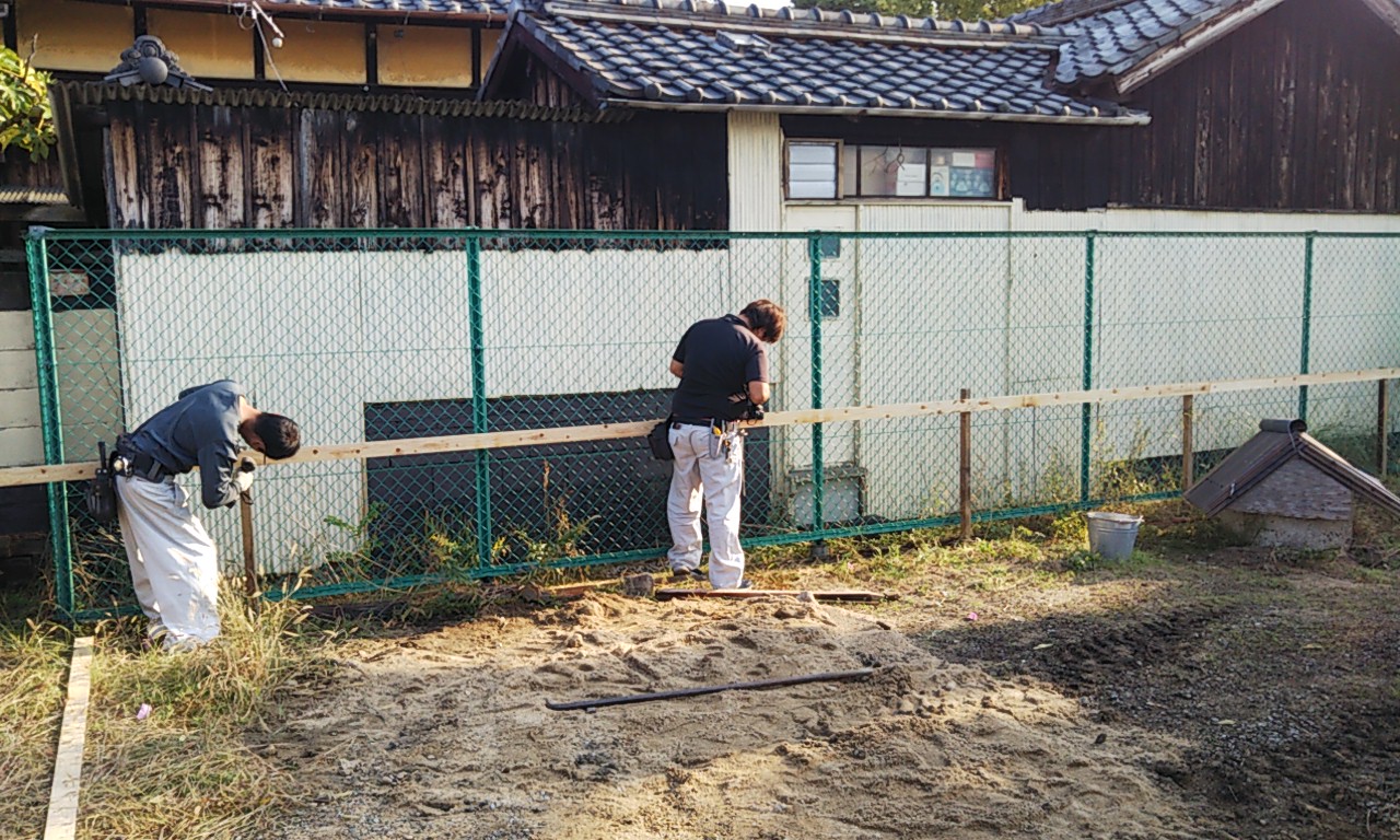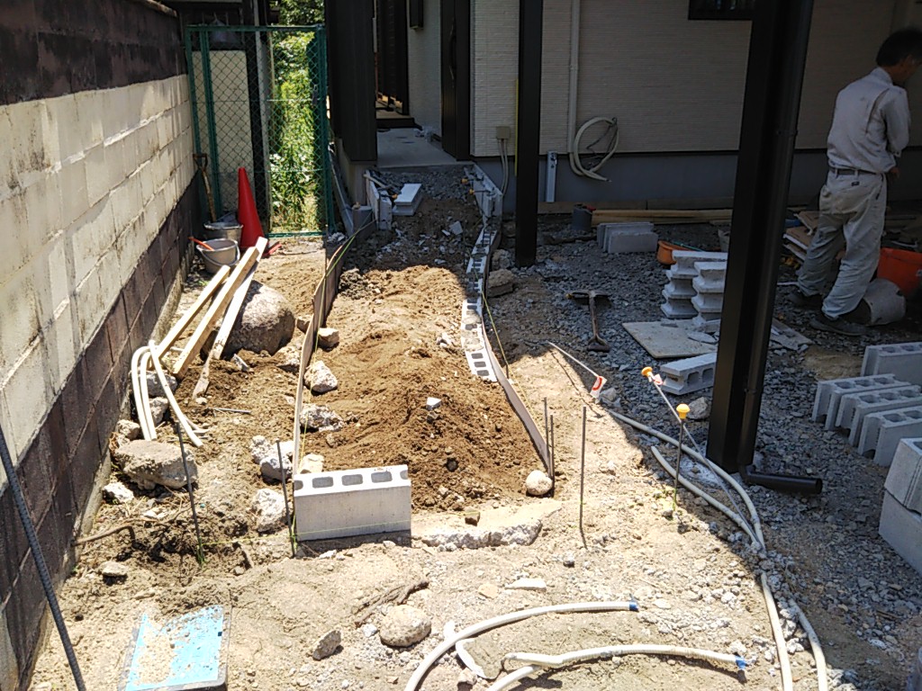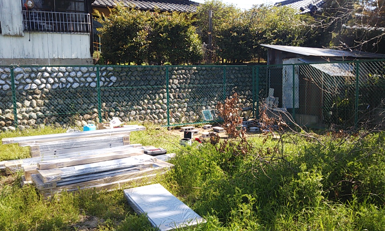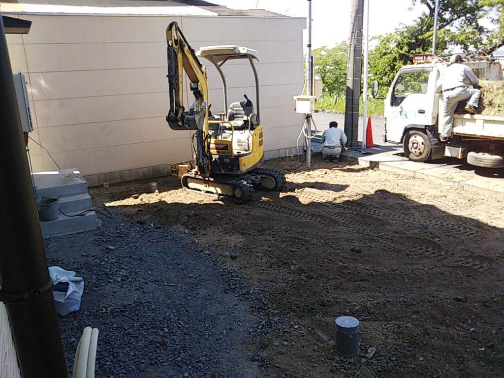 外構工事でガレージの土間を打つために整地作業を行います。今までは材料や雑草などで雑然としていましたがなんだかすっきりしました。