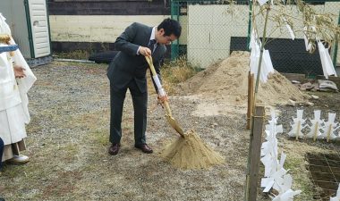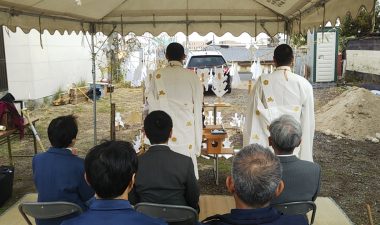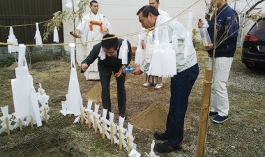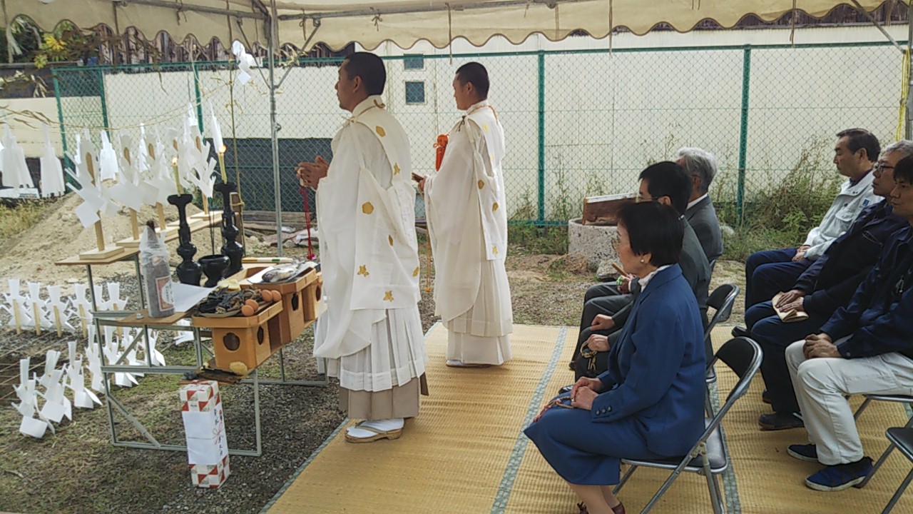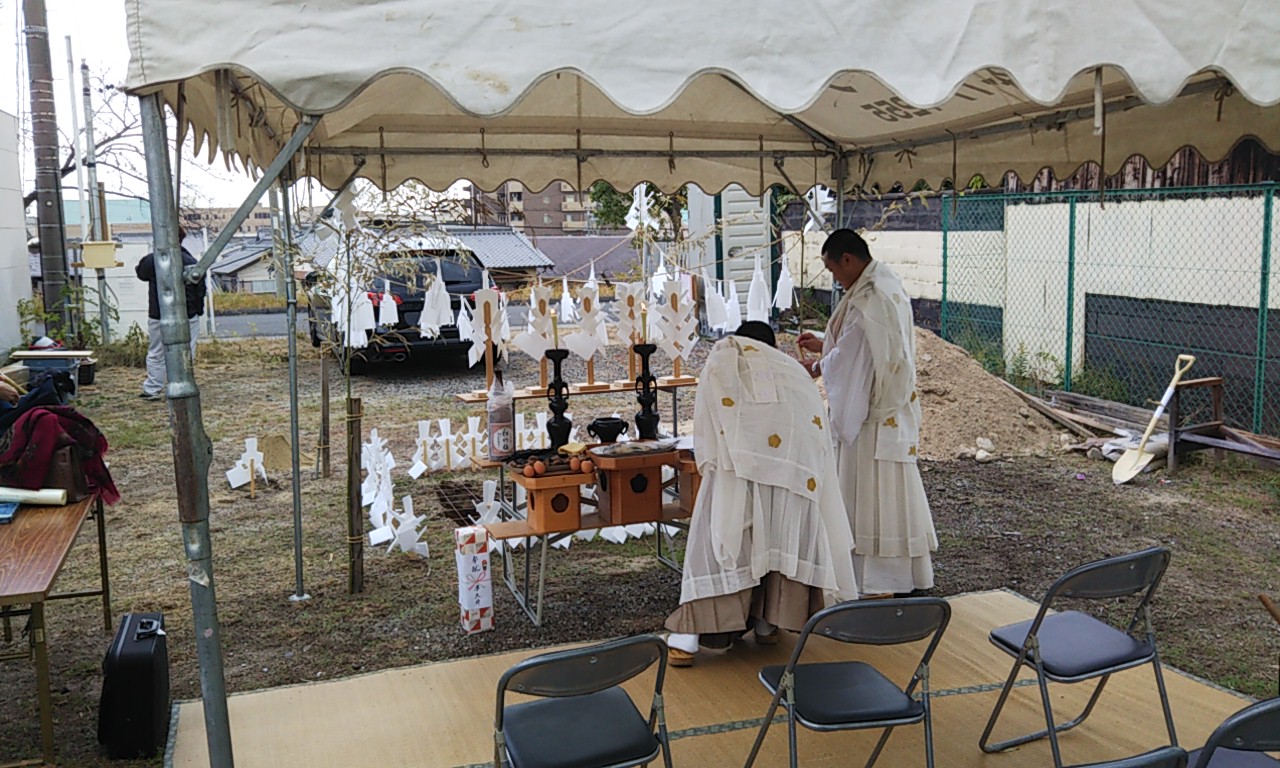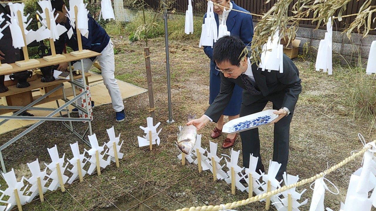 全ての物を鎮め終え、無事に地鎮祭が終了しました。祭事を行ってもらいました僧侶の方に聞くと、分かっている限りではこの式典のやり方というのが一番古来から伝わる方法だとか。本日は貴重なものを見せてもらいました。