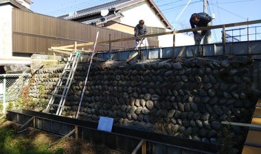 日は雲に隠れがちでしたが、12月だというのに異常な暖かさの中、職人さんは上着を脱いで作業をしています。