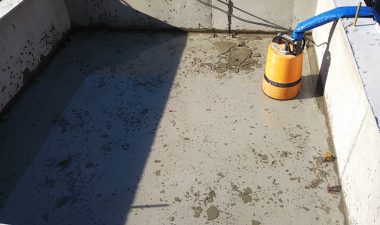 先日降った雨水が基礎の内側に溜まっています。排水にはポンプが威力を発揮します。