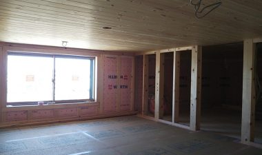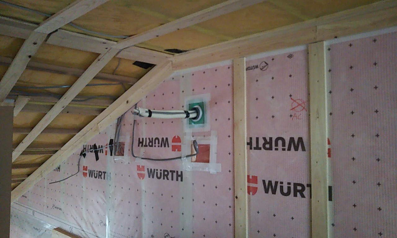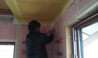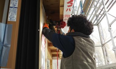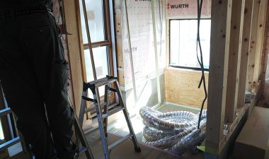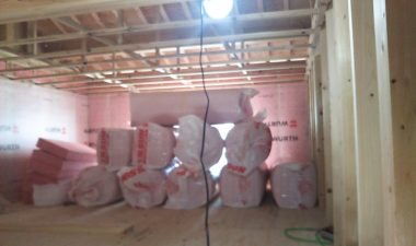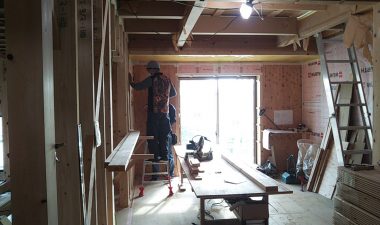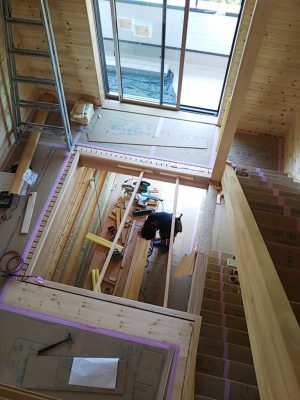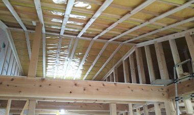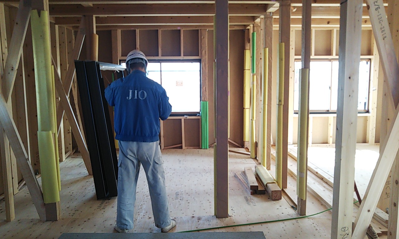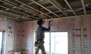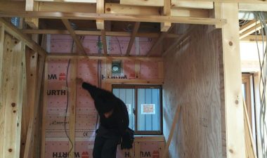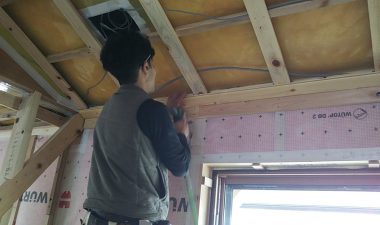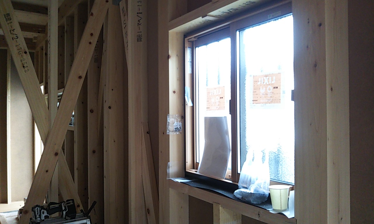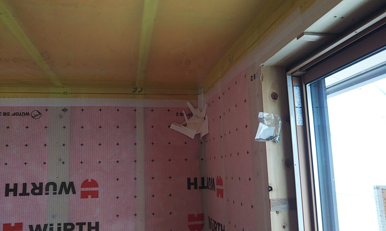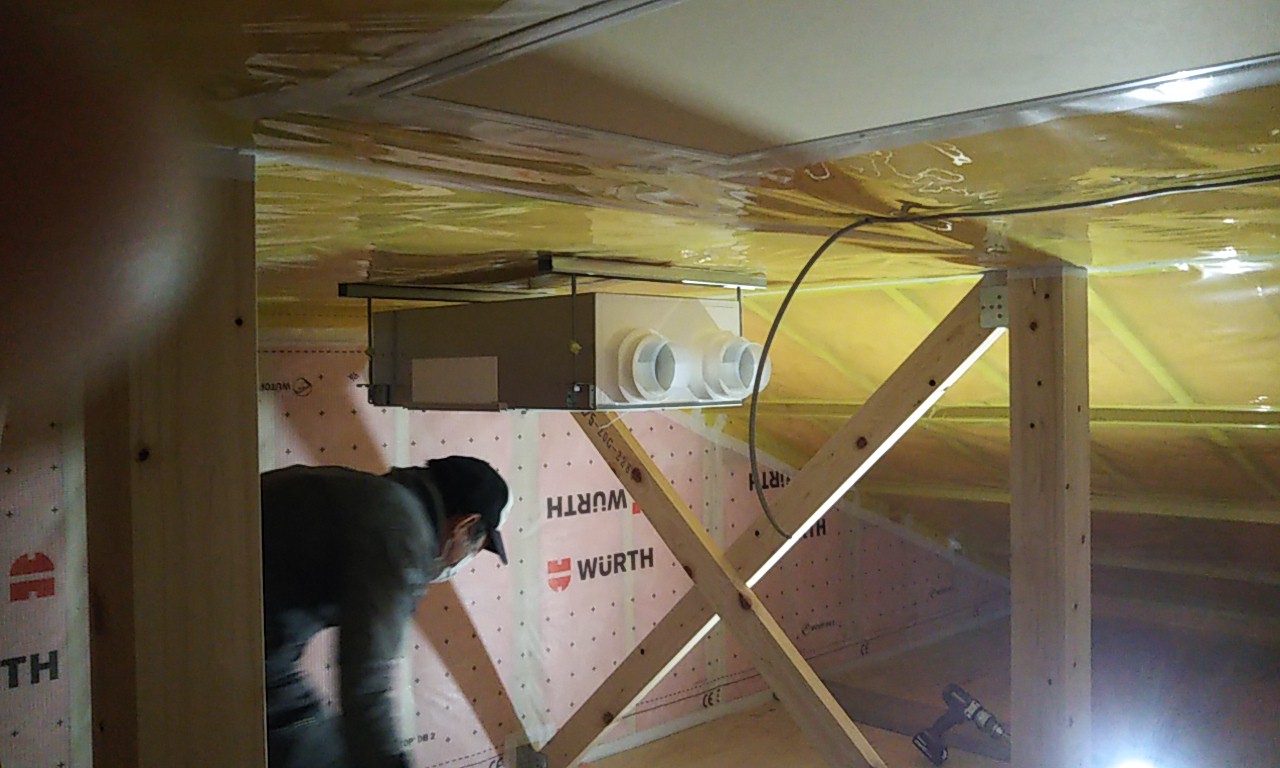 断熱気密工事がほぼ完了してきました。ここへきてこの暖冬でも寒い日が多くなってきましたが、今日のように晴天ならば窓から陽射しが入り、室温が上昇しても断熱材によって熱を逃がすことなく非常に暖かい環境で作業ができます。