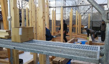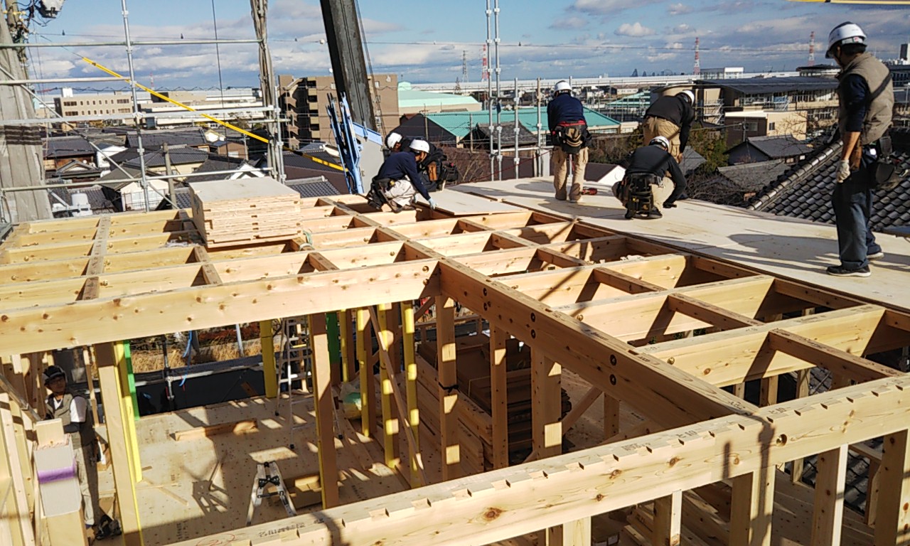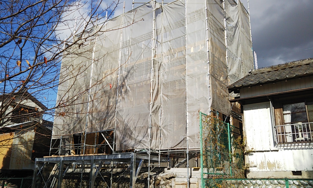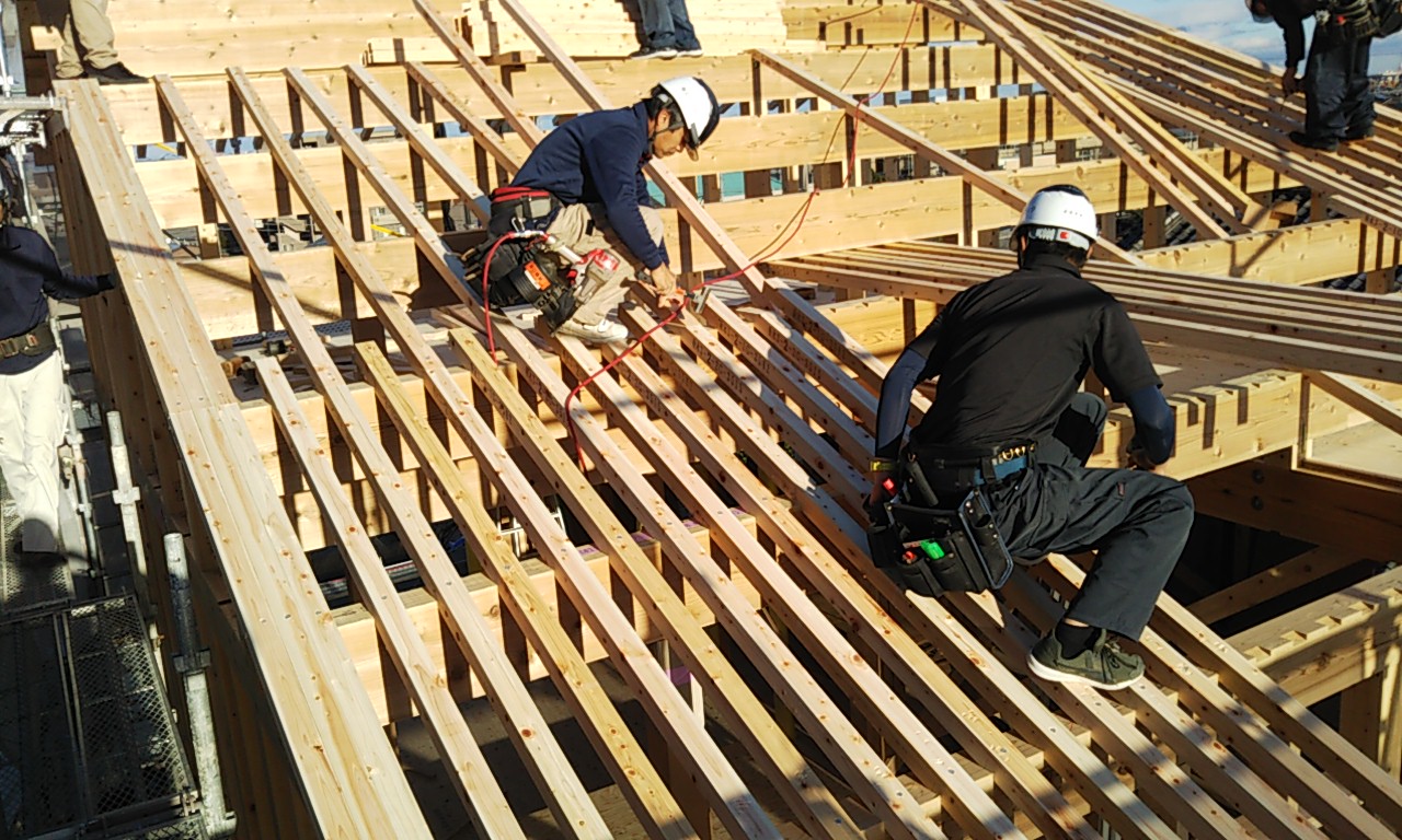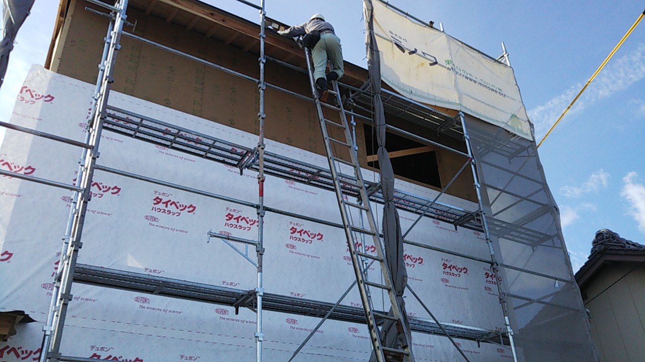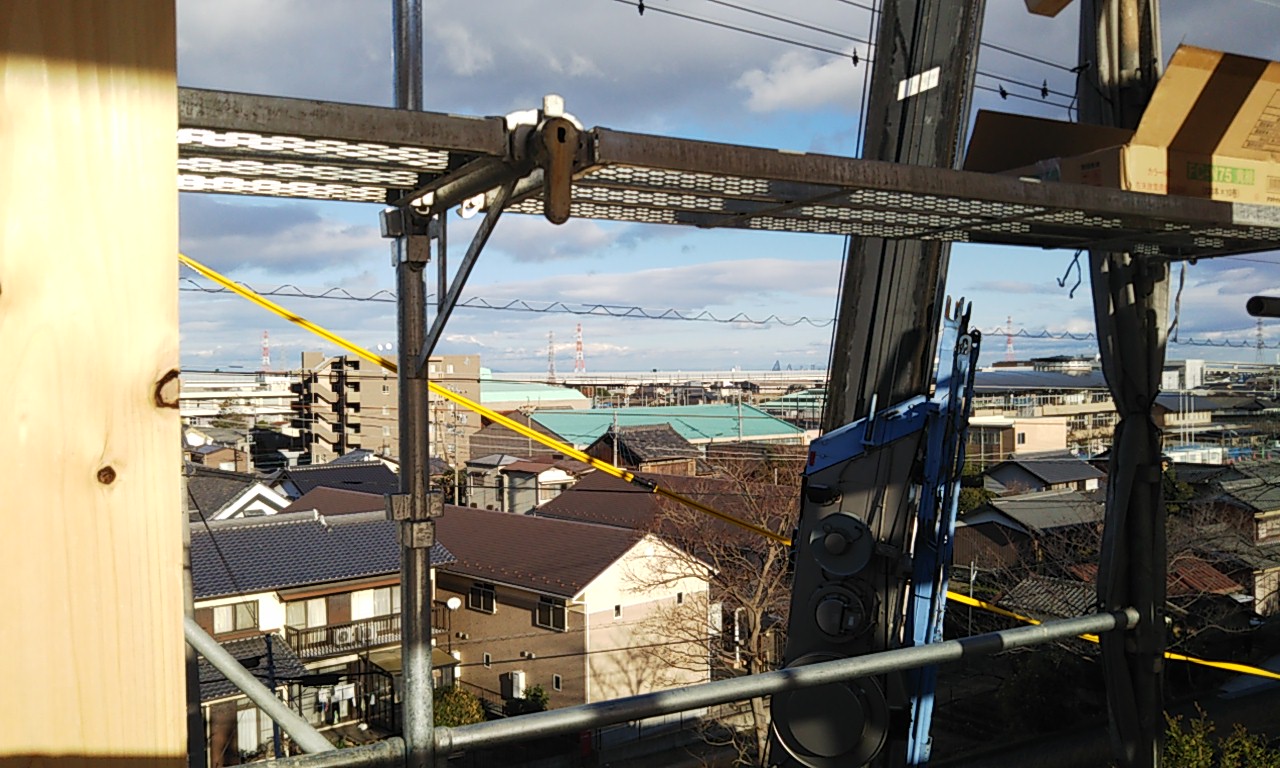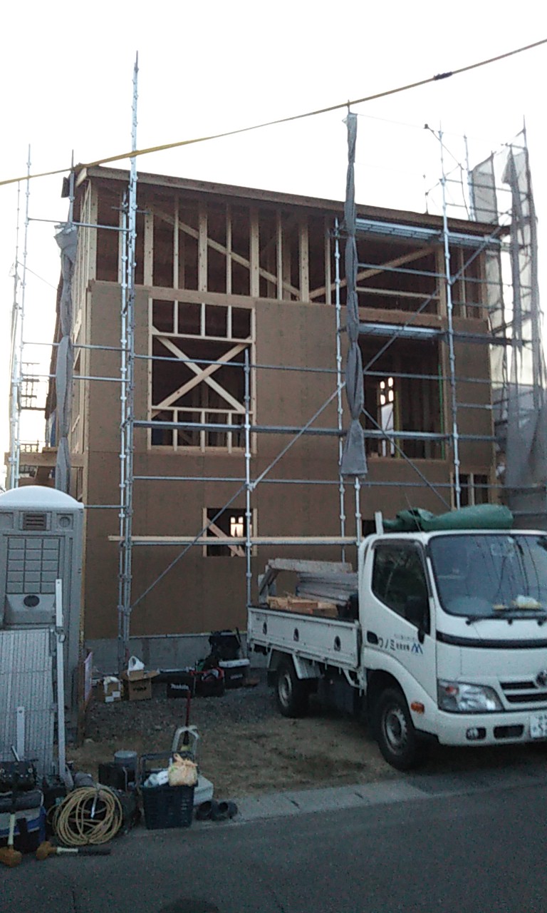 先日上棟をしたばっかりですが、年内はあとわずか。今年は外回りの雨仕舞くらいで終了する予定です。