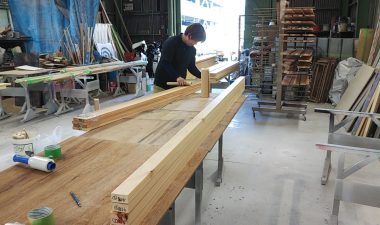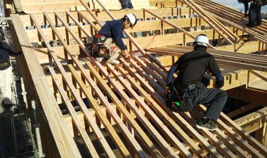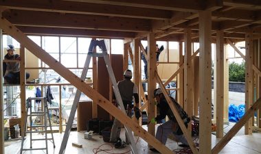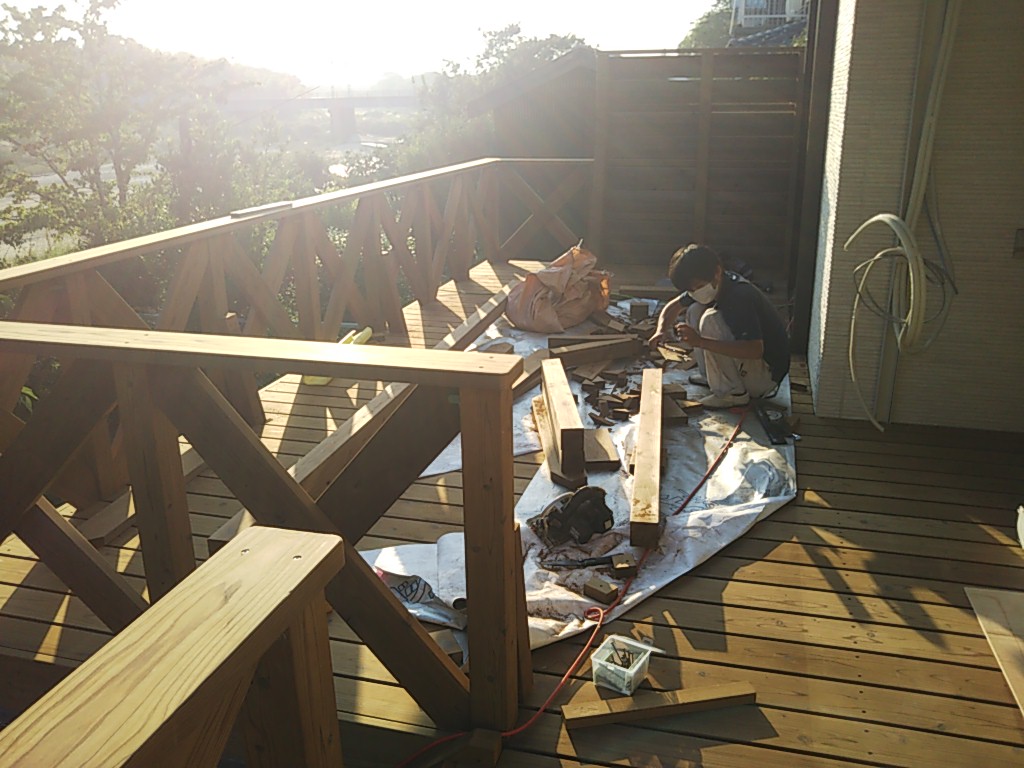 デッキの材料にも継手、仕口を施す若手大工。親方の教えがしっかりと発揮されているようです。