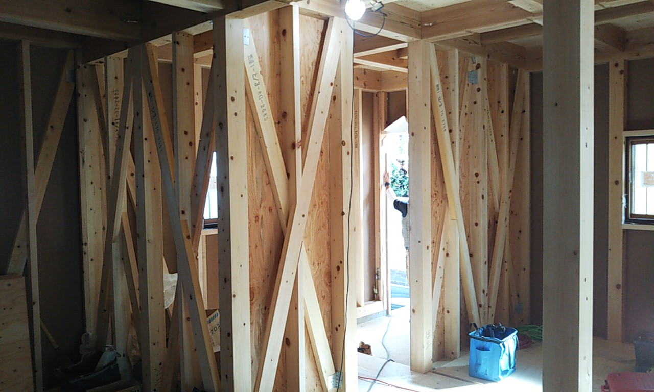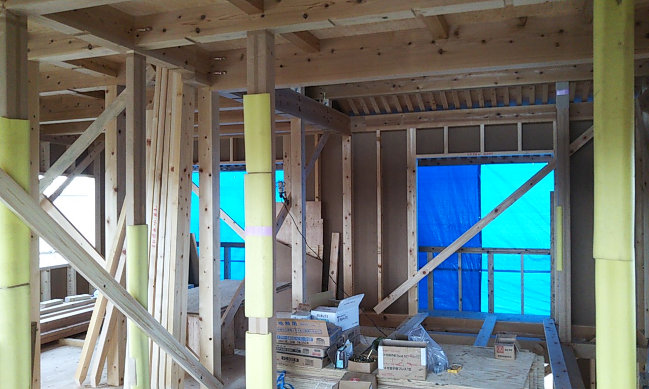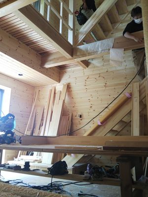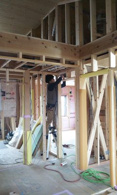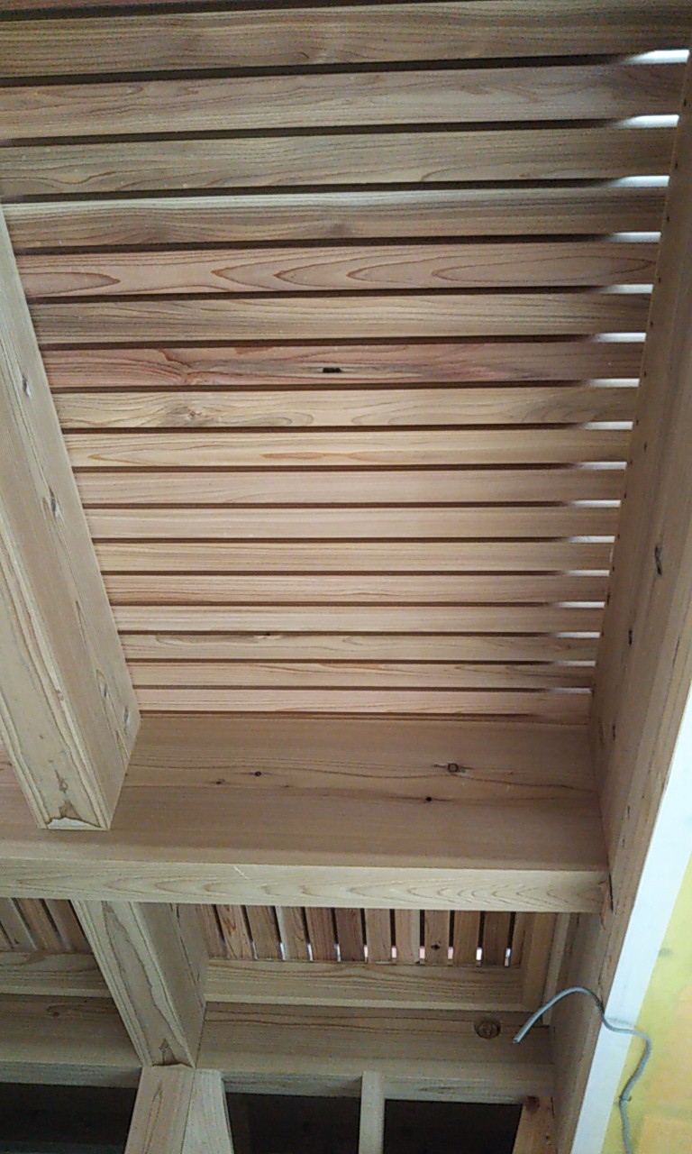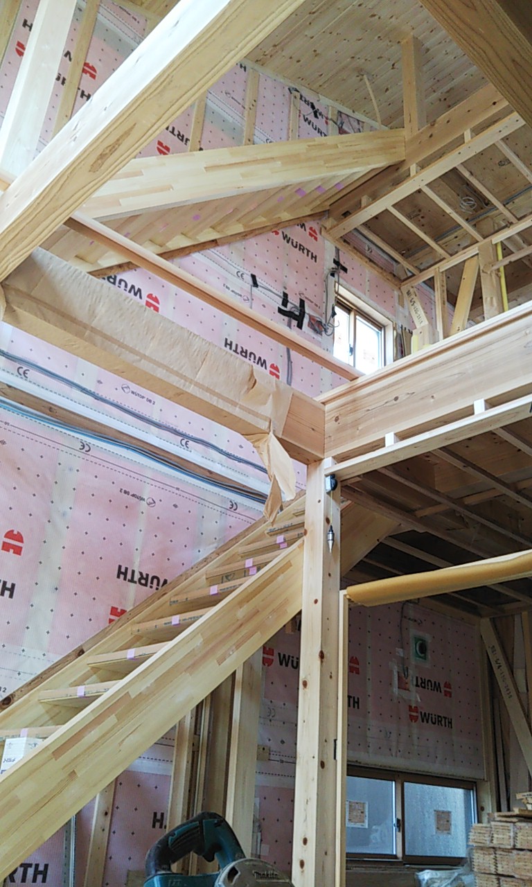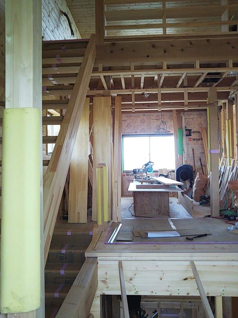 内部は大工さんによる壁下地、天井下地がほぼ完了。明日から工場へ加工に行くそうです。