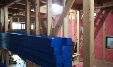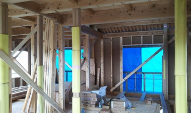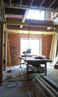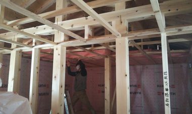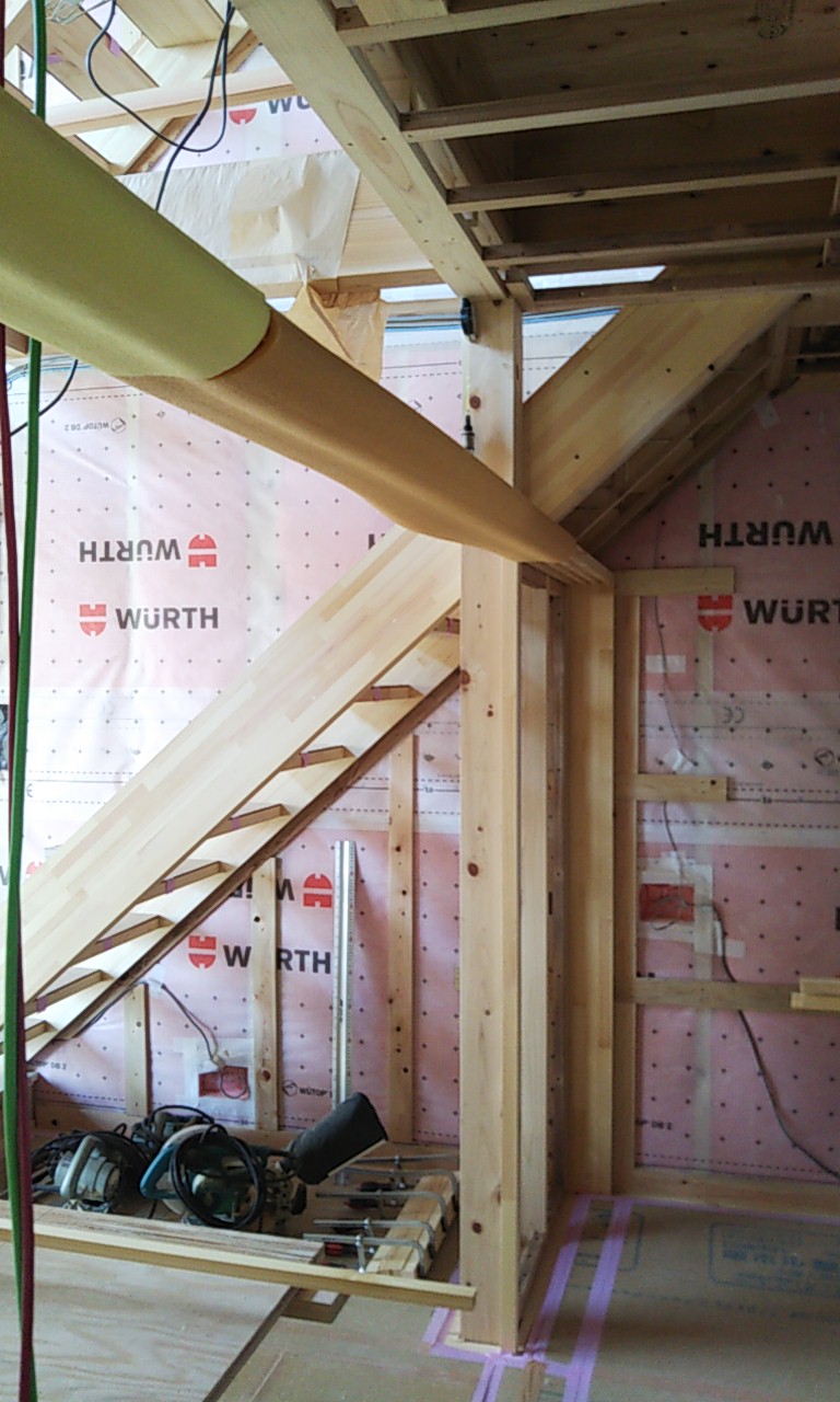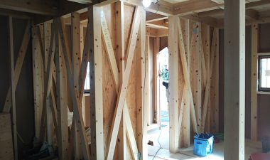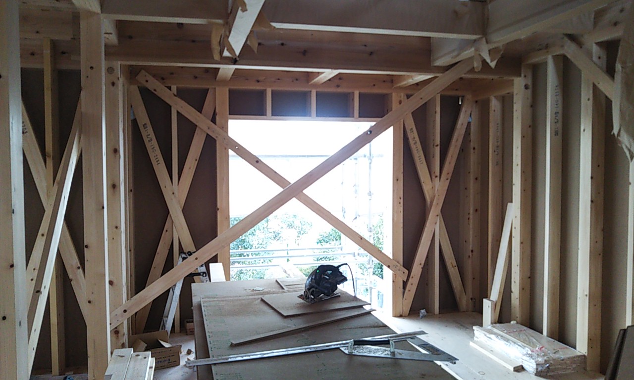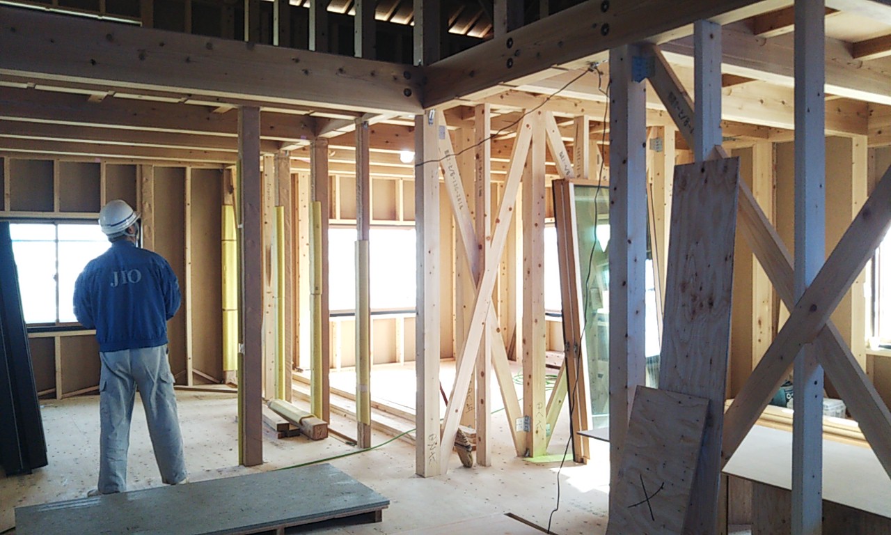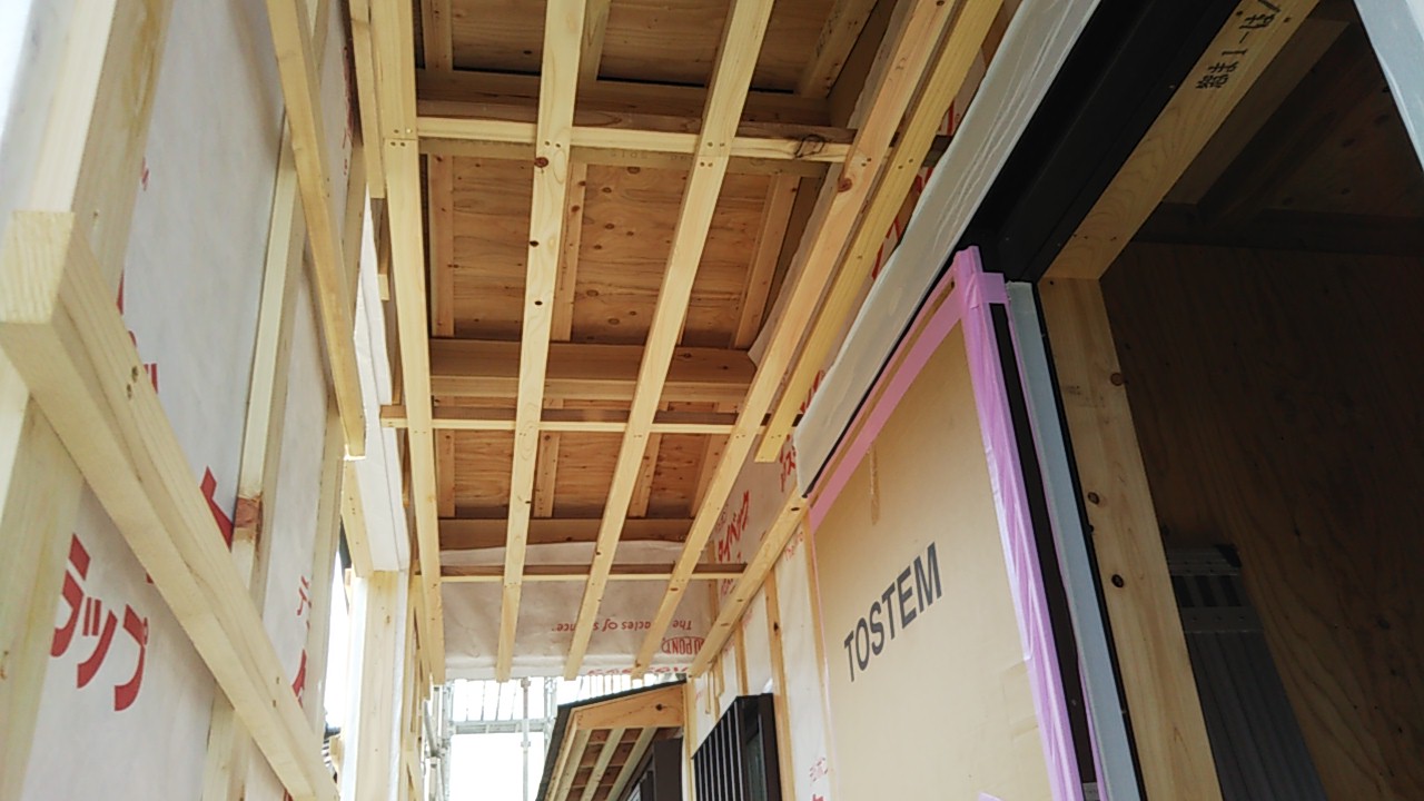 内部は大工さんによる壁下地、天井下地がほぼ完了。明日から工場へ加工に行くそうです。