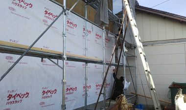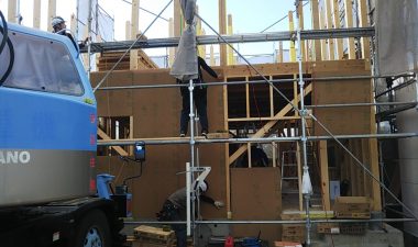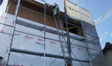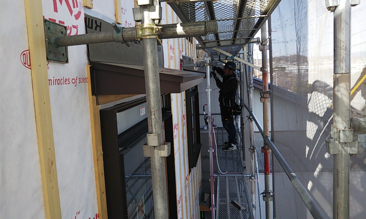 現場では外壁材の施工が進んでいます。先日からギックリ腰の痛みを引きずりつつ作業をしてくれるサイディングの職人さん。『若いときに比べて痛みが長引くようになりました。』と、少し早引けして病院に行くそうです。