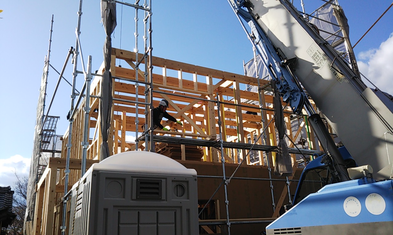 無事にこの日の作業は終了。土地の法規上、だいぶ長い事お待たせしておりましたが、上棟の日を迎える事ができました。N様おめでとうございます。