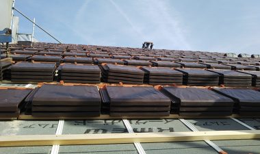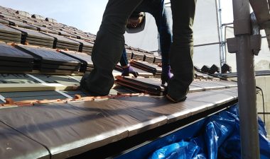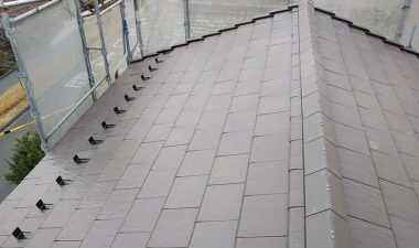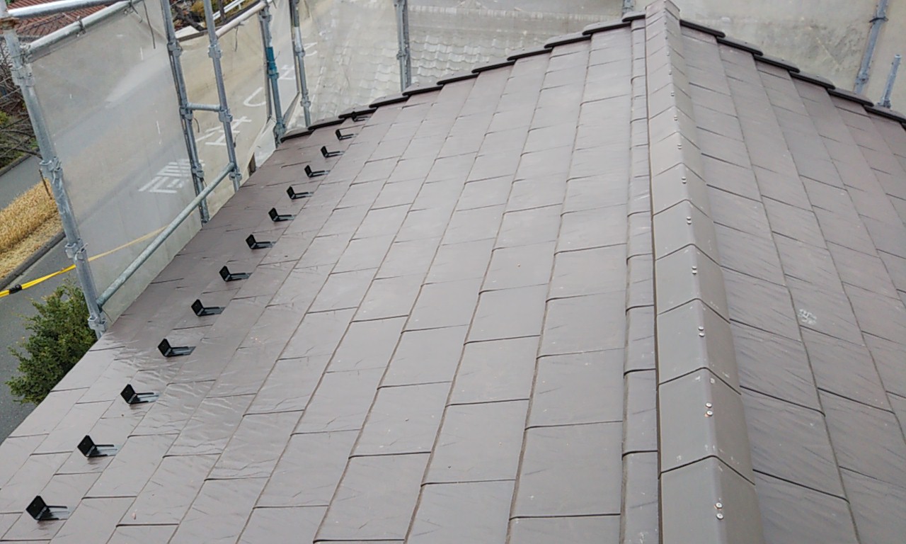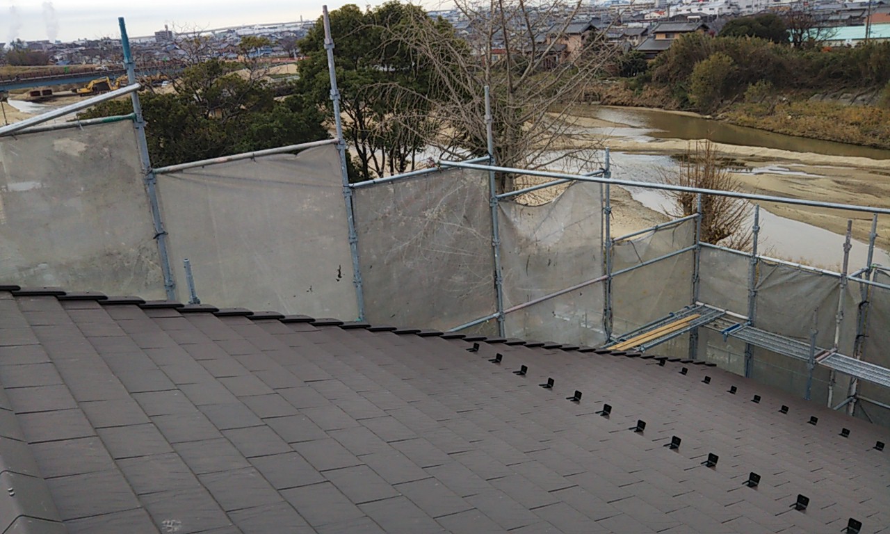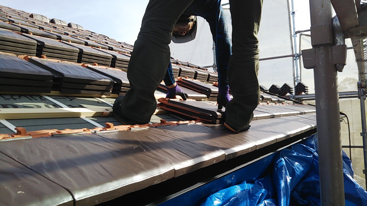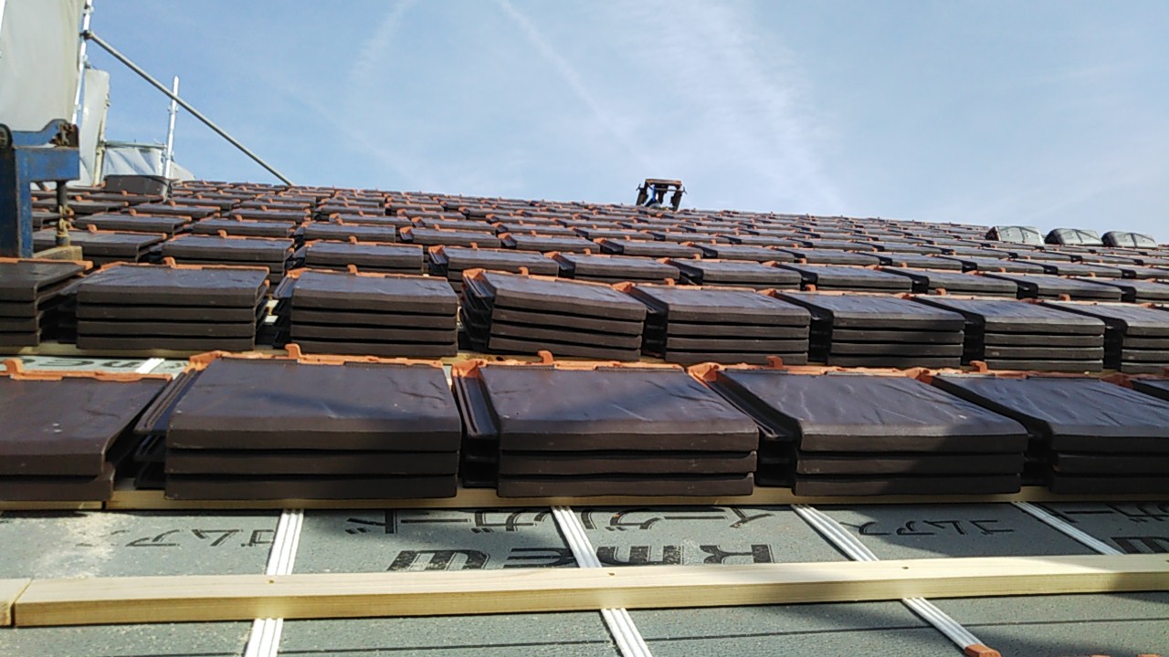 屋根瓦葺き工事は完了しました。南北で長さは違いますが、屋根の形状として一番単純な切妻屋根なので、施工も早く済んでいます。