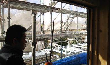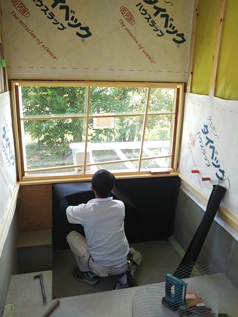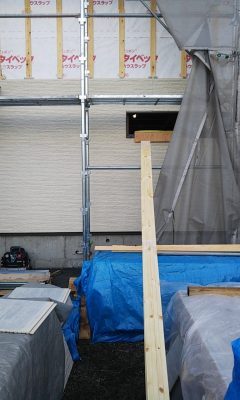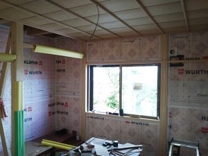 サッシの取付、防水シートの敷設も大方完了。ひとまず年末年始に向けての雨仕舞が終了しました。