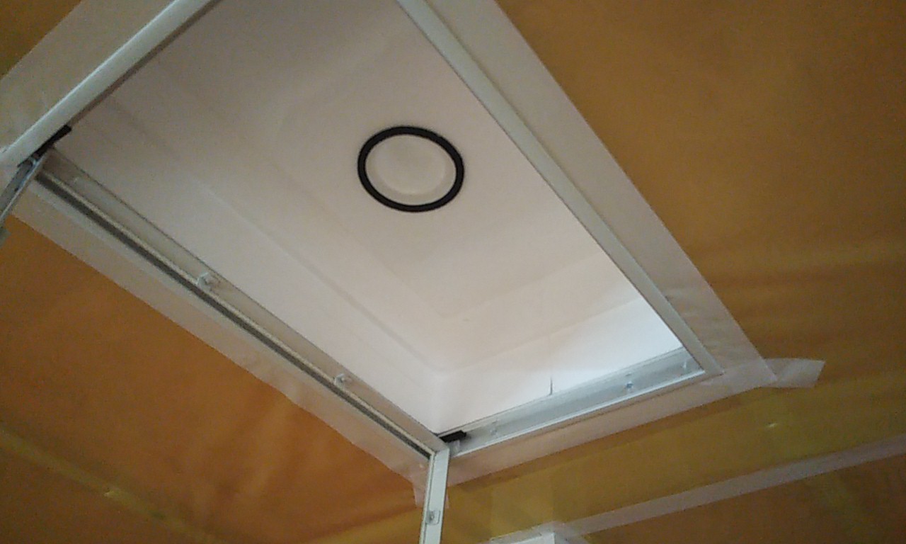 最上階の天井点検口には高気密高断熱タイプを使用します。外部に面する天井、壁などの部分には完全に断熱層、気密層を施しますが、それを打ち抜く点検口だけ通常タイプを使用してしまっては、まさに『画竜点睛を欠く』という状態です。この開口部もきっちりと断熱気密を施すことによって住宅の性能を高めています。