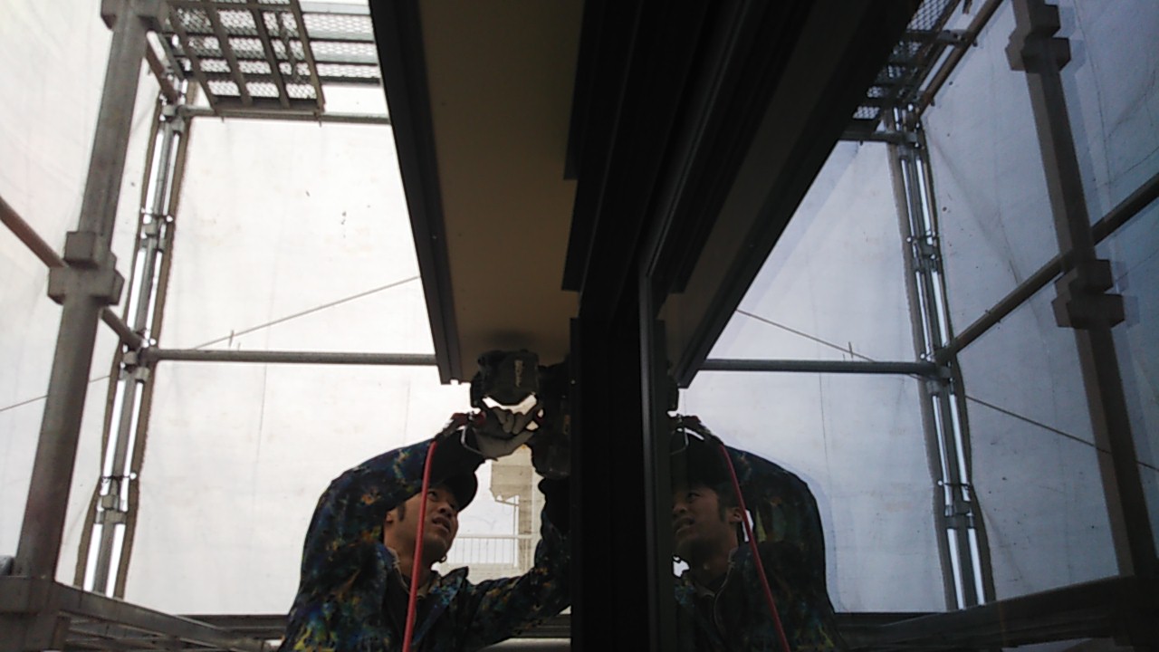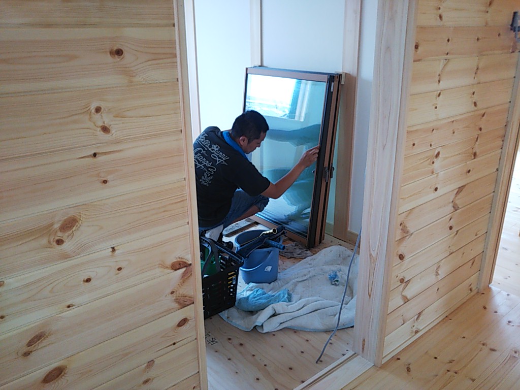 今日は完成クリーニングの日です。先ほどのガラスのバードストライクの跡も『鳥の激突はよくあるよね~』と事も無げに言いながらきれいに磨いていってくれる業者さんです。そんなに頻繁に目撃しているのでしょうか。