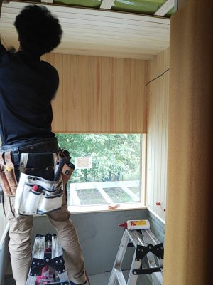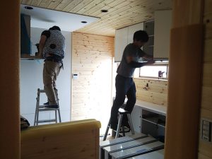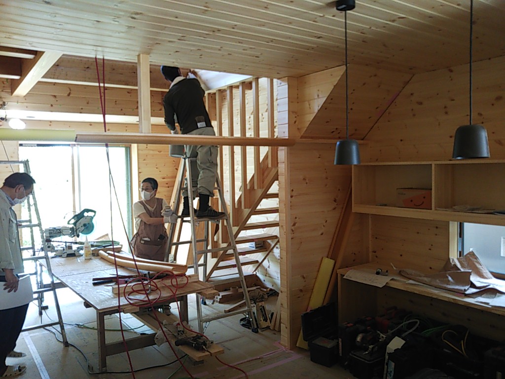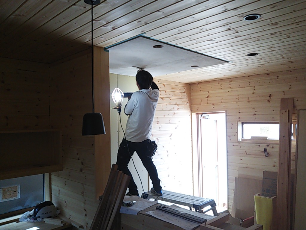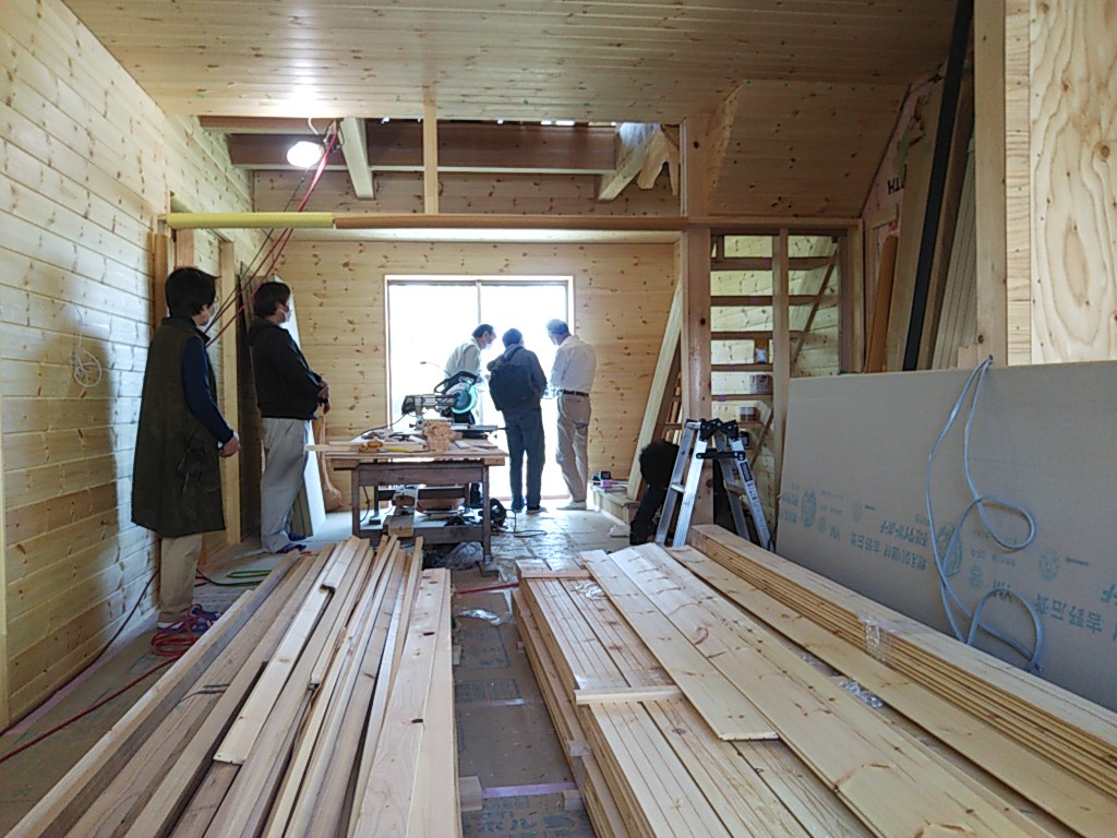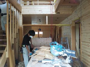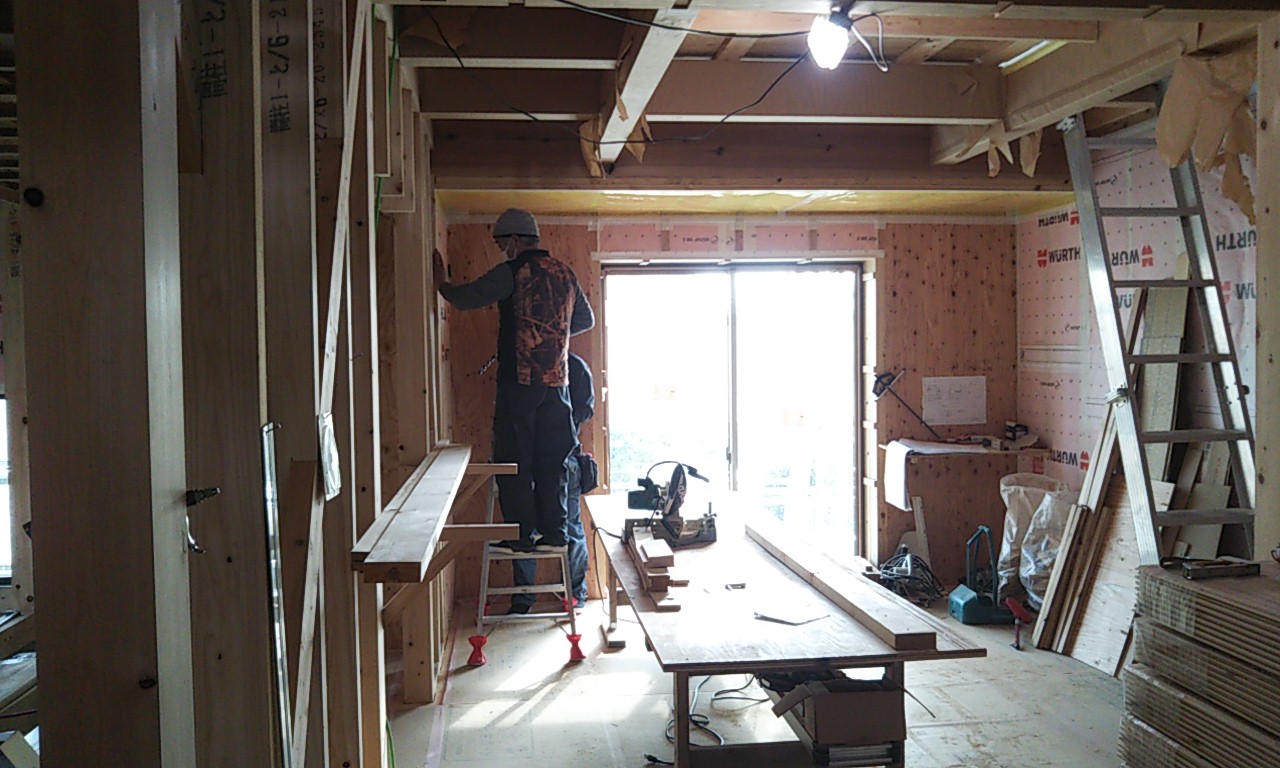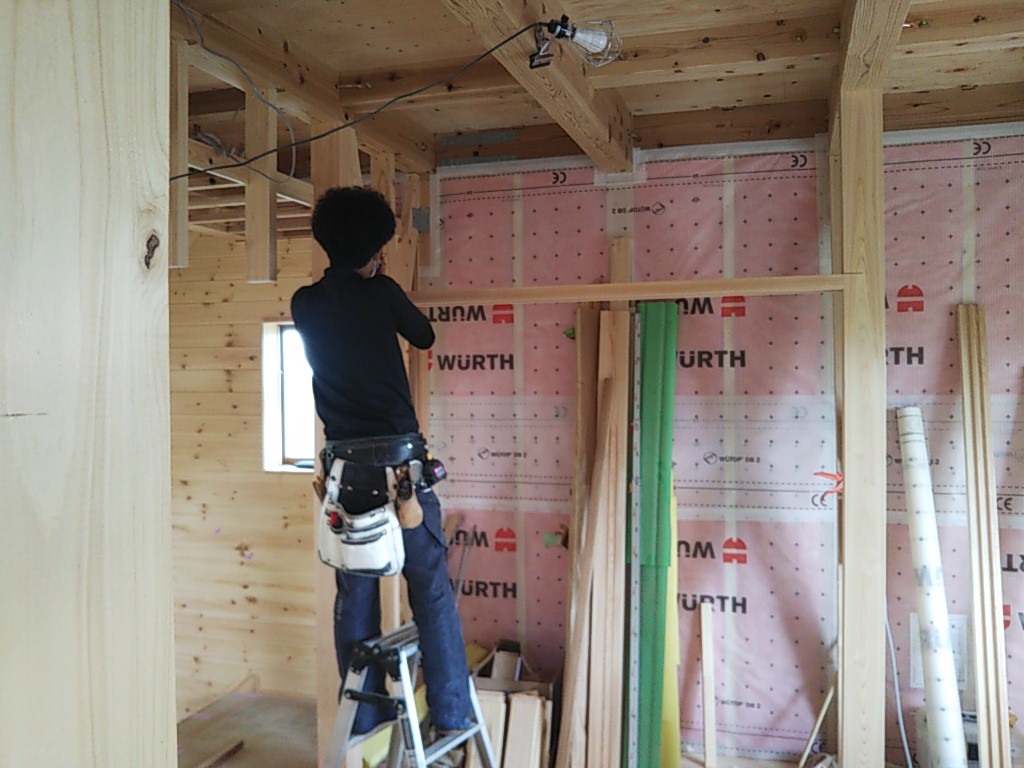 造作工事もまさに大詰め。若手大工2人もラストスパートにもうひと踏ん張りしています。今日は夜なべだな・・と予感がします。