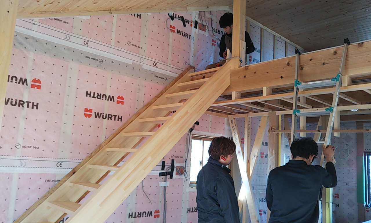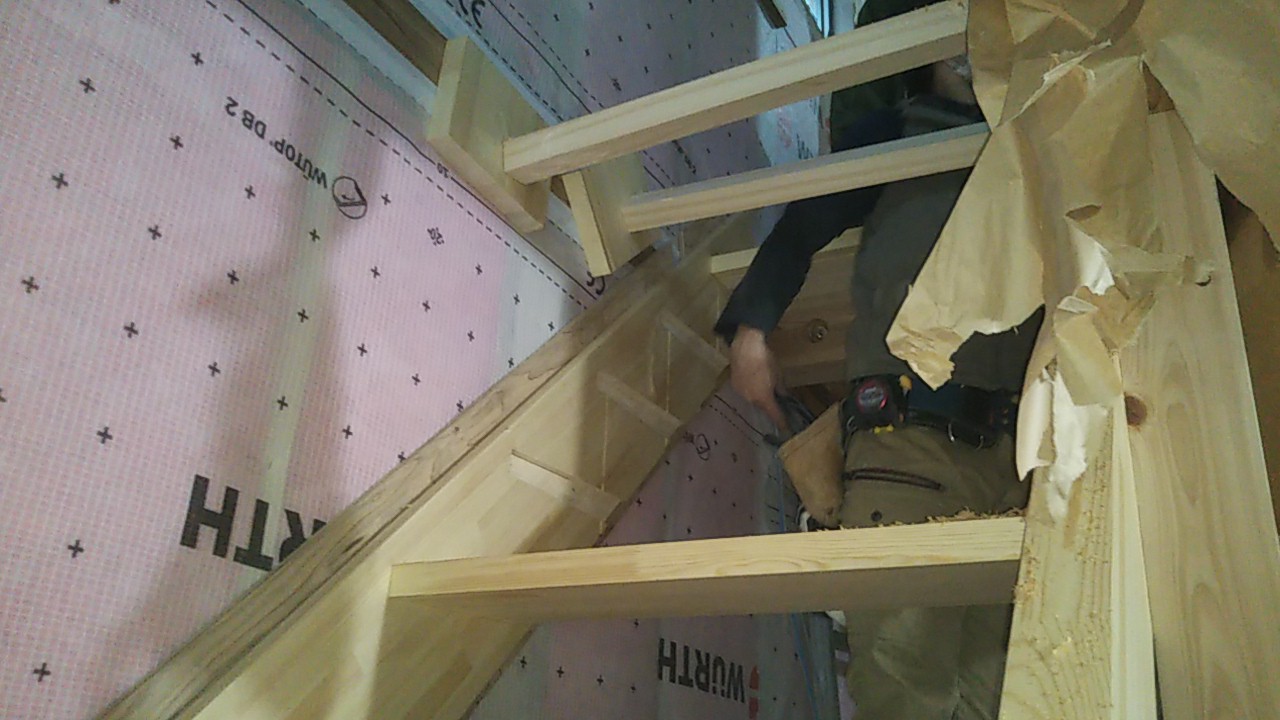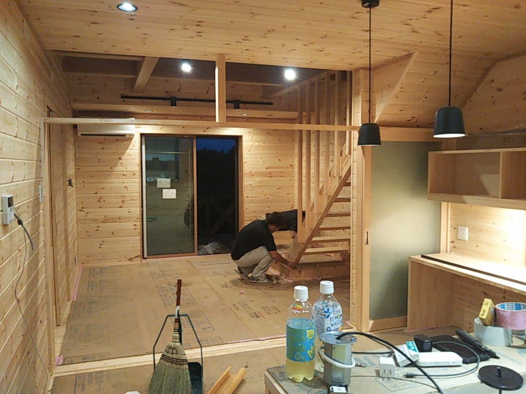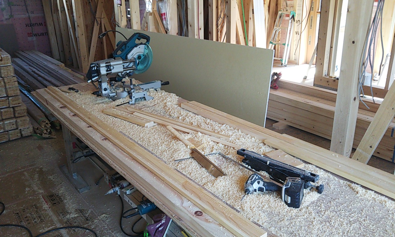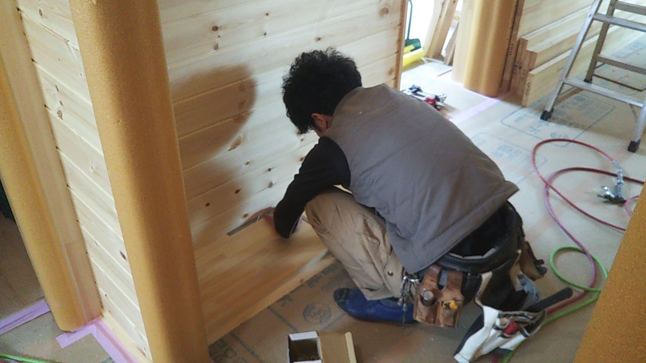 造作工事もまさに大詰め。若手大工2人もラストスパートにもうひと踏ん張りしています。今日は夜なべだな・・と予感がします。