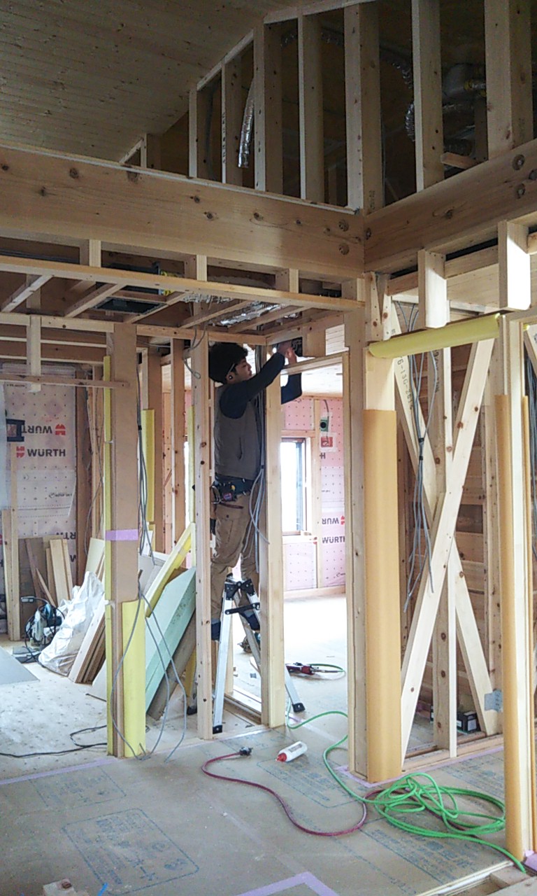 電気業者さんも現場へ入り、配線工事の真っ最中です。