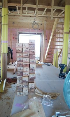 内部の工事があらかた進んできたので、上棟式の際に預かっていた棟札を棟梁に取り付けてもらいました。