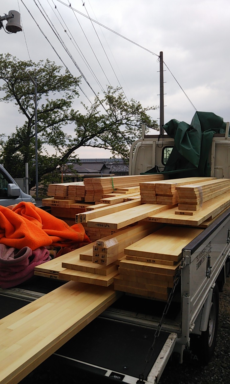 名古屋で塗装してもらいました羽目板の運搬、第2便です。前回よりも多少多い量。今回も筋肉痛が心配です。