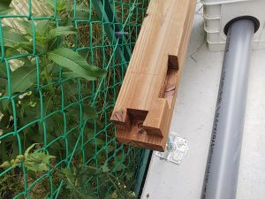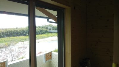 完成見学会で『格子の間から物とか落ちないんですか?』と聞かれますが、裏側から網戸の網を張付けていますので網目より大きなものは落ちる心配はありません。