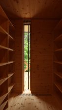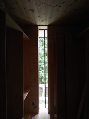 廊下の突き当り、縦長のスリット窓からのぞく新緑と差し込む光。明暗のコントラストが鮮やかです。こういう情景を見ると、かの安藤忠雄氏が『光の協会』建設に傾けた情熱の一端でも分かるような気がする、というのは言い過ぎでしょうか。