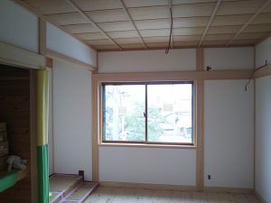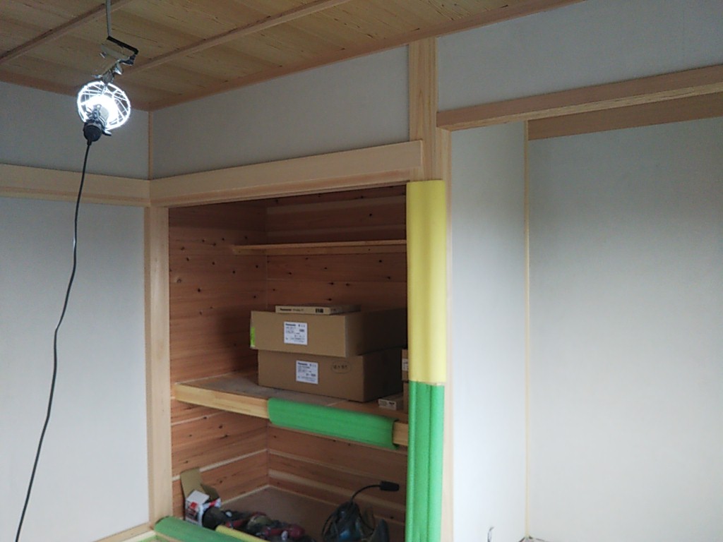 和室の造作工事がおおよそできてきました。後は壁板を張って出来上がりです。