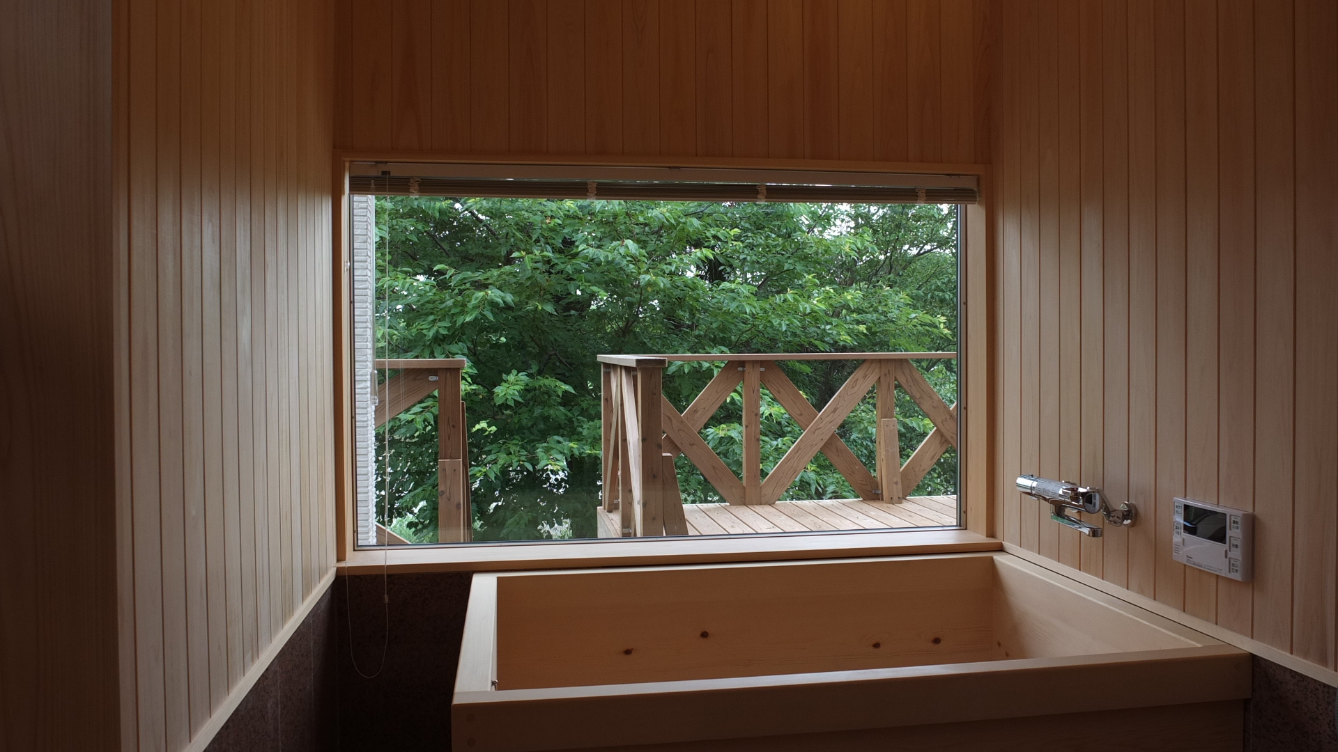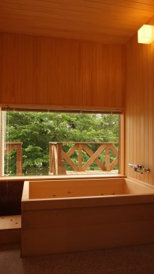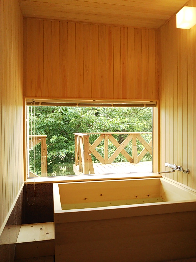浴室の壁天井は桧張りです。まさに『桧風呂』。スーパー銭湯などでしかお目にかかれませんが、どんな入り心地なんでしょうか。